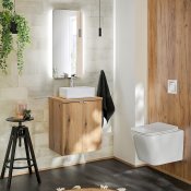 Dwudrzwiowa szafka zapewnia dużą miejsca do przechowywania akcesoriów łazienkowych, utrzymując porządek, a dzięki systemowi cichego domykania drzwi zapewnia dodatkowy komfort użytkowania. Wykonana z trwałej płyty laminowanej, zapewnia solidność i długotrwałe użytkowanie. Przemyślana konstrukcja szafek, gwarantuje wygodne użytkowanie, zachowując jednocześnie kompaktowe wymiary, idealne do mniejszych przestrzeni.