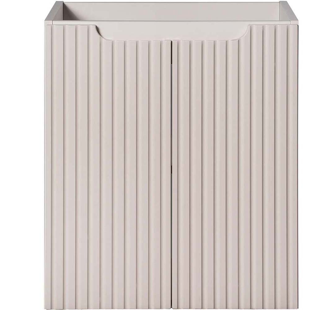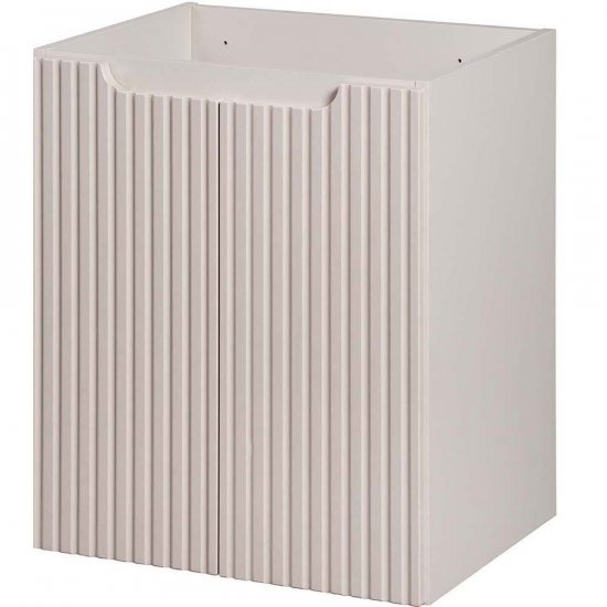 Szafka pod umywalkę dwudrzwiowa o szerokości 50 cm z kolekcji Nova Cashmere łączy harmonijny, minimalistyczny design z funkcjonalnością, inspirowaną codziennymi potrzebami i trwałymi rozwiązaniami. Pionowe, ryflowane fronty nadają meblom unikalny charakter i optycznie powiększają przestrzeń łazienki, a kaszmirowy kolor dodaje subtelnego ciepła, doskonale komponując się z różnorodnymi aranżacjami wnętrz. Zintegrowane podchwyty nie tylko podkreślają jej styl, ale również wprowadzają spójność wizualną.