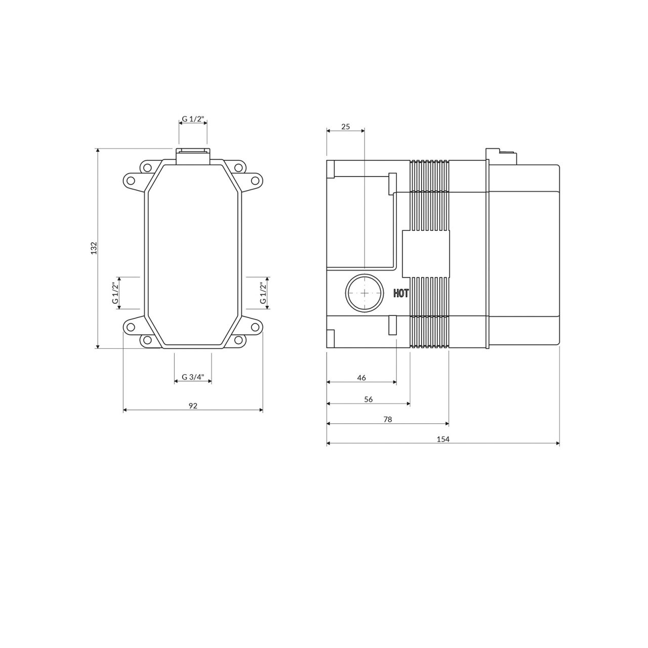 Element podtynkowy został wyposażony w mosiężny korpus oraz wysokiej jakości głowicę ceramiczną. Jego zaletą jest łatwy montaż oraz minimalna głębokość zabudowy, która wynosi zaledwie 5,5 cm. BOX jest przeznaczony do kompletowania z elementami natynkowymi.
