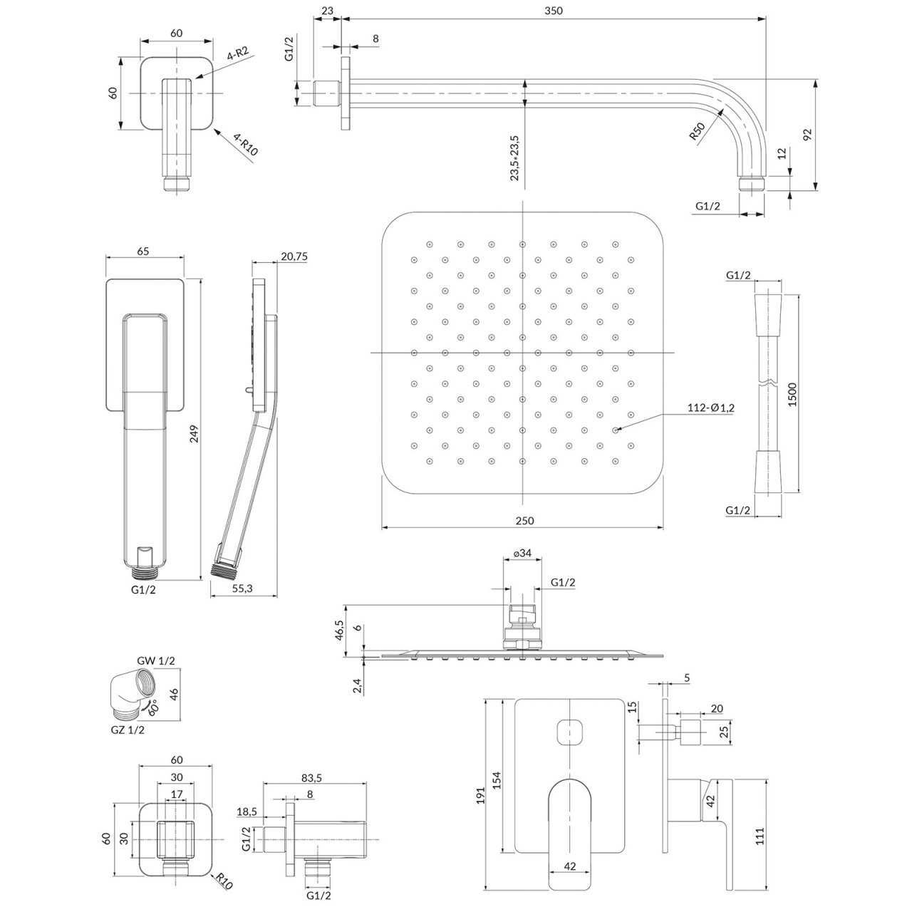 Zestaw prysznicowy podtynkowy BARETTI chrom połysk