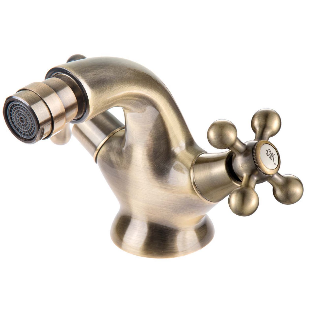 Bateria bidetowa stojąca STILO z korkiem automatycznym mosiądz antyczny