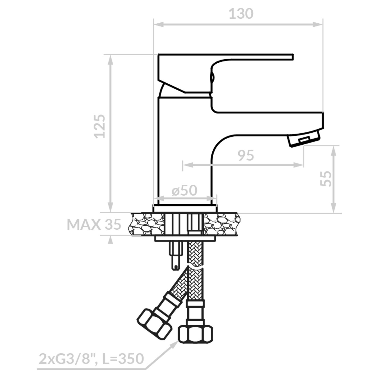 - Zasięg wylewki: 95 mm