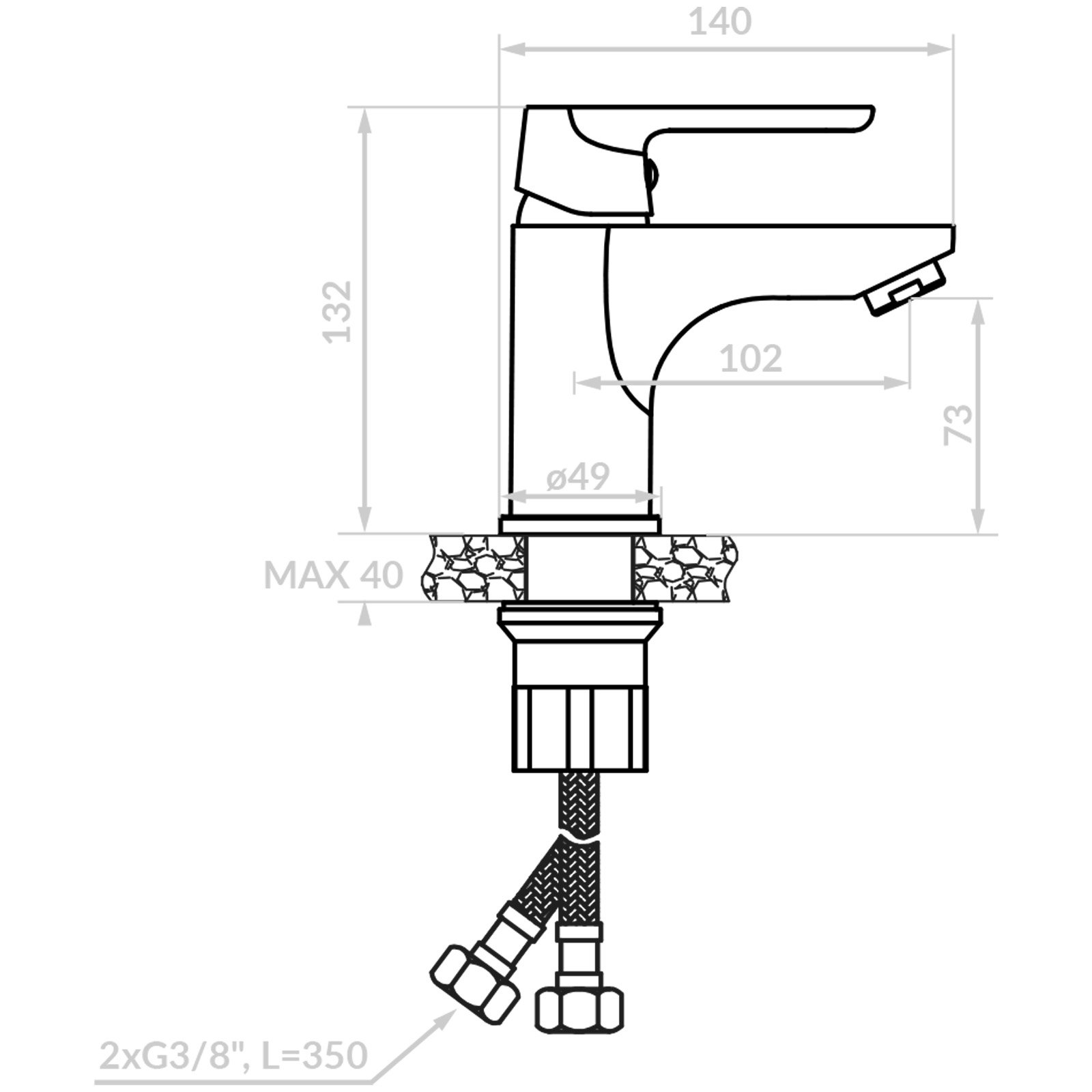 Jednouchwytowa bateria umywalkowa Dima przeznaczona jest do montażu stojącego. Przed wybraniem konkretnego modelu należy dokładnie zmierzyć odległość od otworu na baterię do końcówek zaworów kątowych, które wystają ze ścian. Dzięki temu można zyskać pewność, że długość wężyków przyłączeniowych jest odpowiednia. Bateria Dima z systemem łatwego montażu to produkt o prostej konstrukcji przeznaczony do samodzielnej instalacji zestawie z baterią znajdują się wężyki przyłączeniowe o długości 400 mm. Należy wsunąć je do otworu montażowego w umywalce, a następnie ustawić w osi otworu korpus baterii. Od spodu nałożyć trzeba dwie podkładki zabezpieczające (gumową i metalową). Specjalna podkładka powinna też znaleźć się między otworem w umywalce a baterią. Będzie ona maskowała otwór, co zapewni estetyczny wygląd konstrukcji. Ostatnim krokiem jest połączenie wężyków przyłączeniowych z końcówkami zaworów na przyłączach wody.