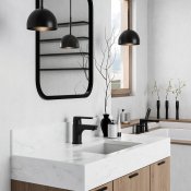 Bateria umywalkowa Dima to jednouchwytowa bateria stojąca z praktycznym korkiem typu klik-klak. Korki takie są pozbawione dodatkowych mechanizmów, dlatego ich obsługa jest bardzo prosta. Aby otworzyć lub zamknąć odpływ, trzeba je jedynie nacisnąć. Bateria Dima ma wylewkę stałą o zasięgu 102 mm oraz wysokiej jakości aerator Neoperl. Perlator ten nie tylko ogranicza przepływ wody, napowietrzając ją i redukując tym samym wysokość rachunków. Jego dodatkową zaletą jest wytrzymałość, a także duża odporność na rdzę i osadzanie się kamienia. Rozmiar aeratora wynosi 24 x 1 mm. Bateria Dima wyróżnia się nie tylko trwałością, ale też ciekawą formą. Stanowi połączenie geometrycznych i obłych kształtów. Atrakcyjna, nietypowa konstrukcja sprawia, że całość prezentuje się bardzo elegancko i idealnie pasuje do nowoczesnych przestrzeni. Bateria Dima stanowi doskonały wybór dla każdego, kto szuka estetycznej, funkcjonalnej i ekonomicznej baterii umywalkowej.
