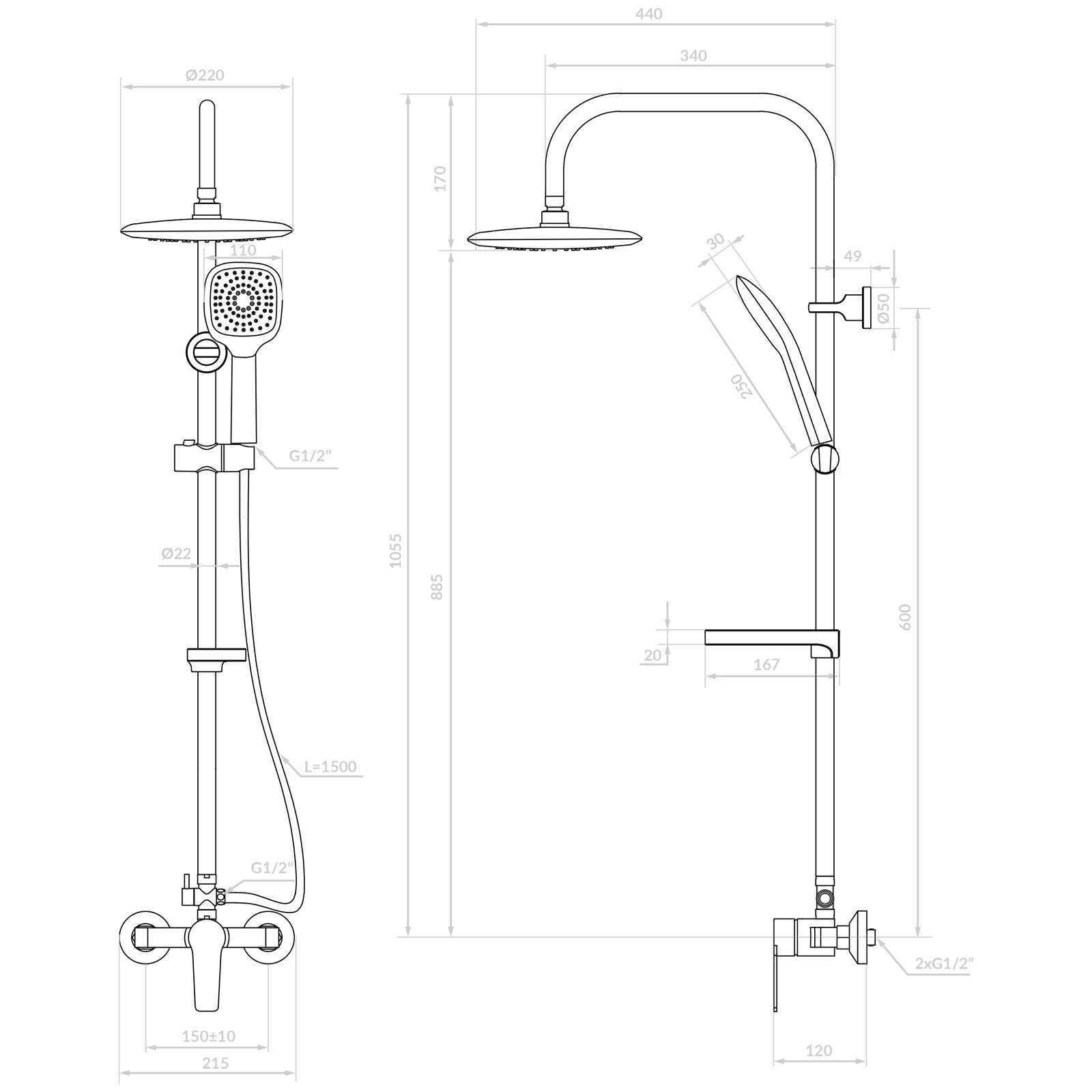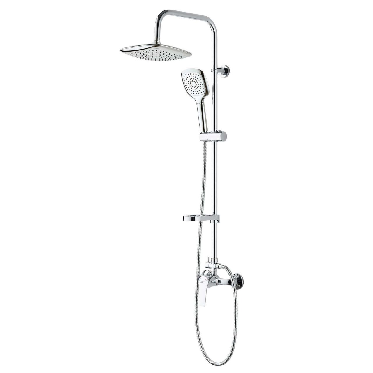 Kolumna Fiona została wyposażona w deszczownię oraz słuchawkę o kwadratowym kształcie z subtelnie zaokrąglonymi krawędziami. Dzięki temu idealnie łączy nowoczesną geometrię z delikatną estetyką, nadając łazience elegancki wygląd i zapewniając komfortowy strumień wody.