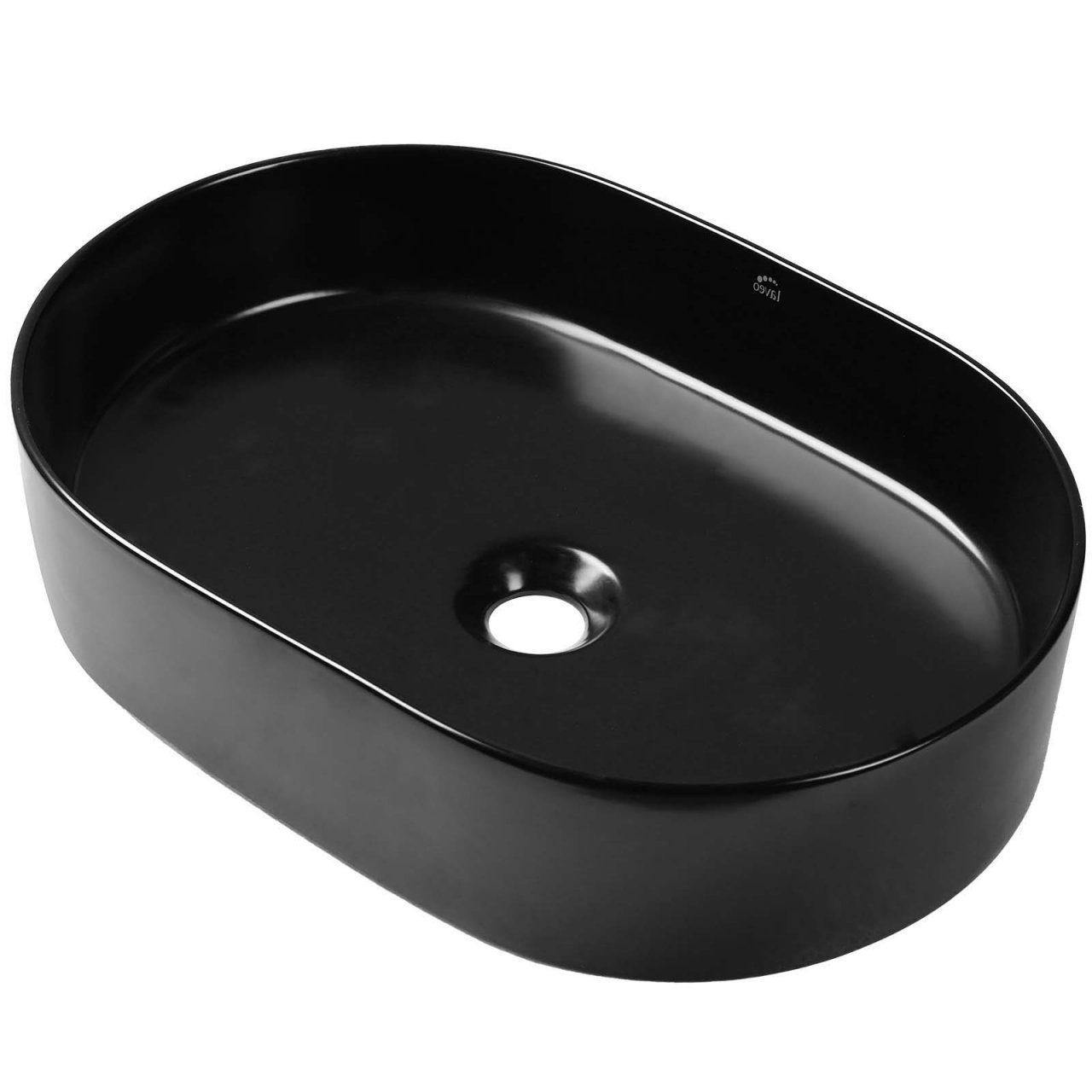 Ceramiczna umywalka nablatowa Desna w czarnym wykończeniu i owalnym kształcie to propozycja do łazienek nowoczesnych, jak i klasycznych. Zamontowana na blacie czy szafce pozwala na stworzenie bardzo funkcjonalnej i efektownej aranżacji łazienki. Dzięki dodatkowej przestrzeni wokół umywalki mamy możliwość wykorzystania blatu do postawienia na nim niezbędnych przyborów takich jak, np.: dozownik do mydła. Brak otworów pod baterię pozwala na swobodę projektową – możemy armaturę zestawić z modelem nablatowym ustawionym niesymetrycznie lub baterią umywalkową podtynkową.
