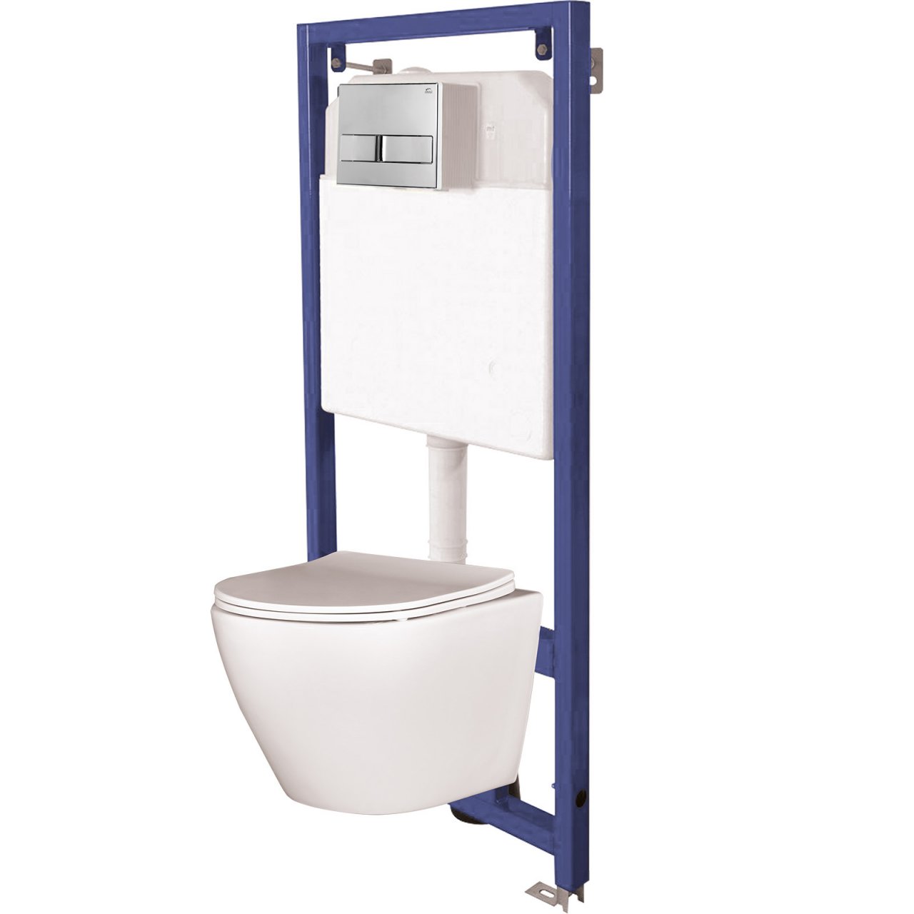 Zestaw DESNA składający się ze stelaża podtynkowego typu slim oraz miski ustępowej, to wygodne rozwiązanie dla osób, które nie chcą tracić czasu na kompletowanie poszczególnych elementów wyposażenia łazienki. Stabilny stelaż o udźwigu do 400 kg posiada regulacje spłukiwania oraz cichy zawór napełniający. Łatwa do utrzymania w czystości bezkołnierzowa miska WC wyposażona jest w deskę wolnoopadającą z systemem łatwego wypinania, który umożliwia jej dokładne mycie za pomocą prysznica. W komplecie znajduje się dwudzielny, chromowy przycisk i wszystkie elementy montażowe.