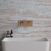 Miedź szczotkowana jest szlachetnym wykończeniem o ciepłej czerwonobrązowej barwie i satynowej powierzchni. Powłoka została wykonana w zaawansowanej technologii PVD.