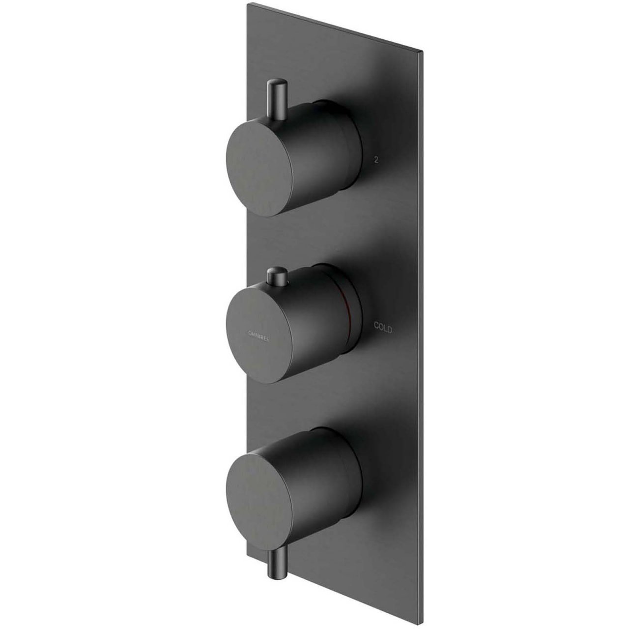 Element natynkowy termostatycznej baterii prysznicowo-wannowej Y 3-wyjściowej podtynkowej grafit szczotkowany.