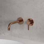 Bateria umywalkowa Y podtynkowa z długą wylewką miedź połysk.