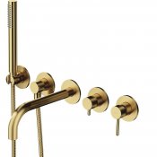 Bateria wannowa Y 5-otworowa podtynkowa z długą wylewką mosiądz szczotkowany.