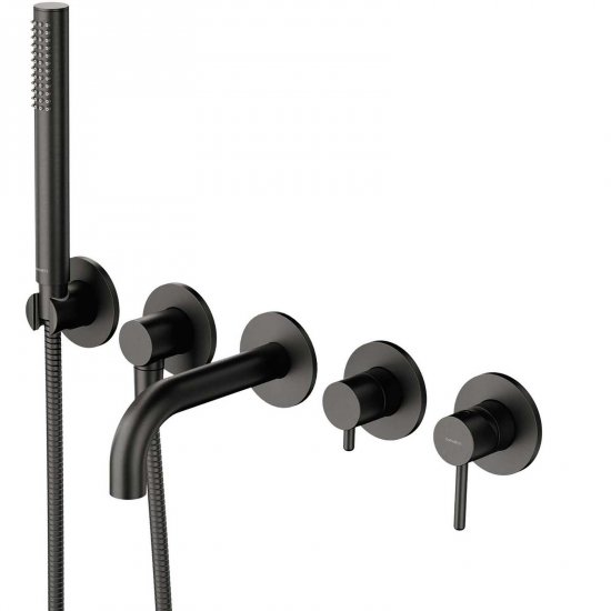 Bateria wannowa Y 5-otworowa podtynkowa z krótka wylewką grafit szczotkowany.