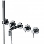 Bateria wannowa Y 5-otworowa podtynkowa z krótka wylewką nikiel szczotkowany.