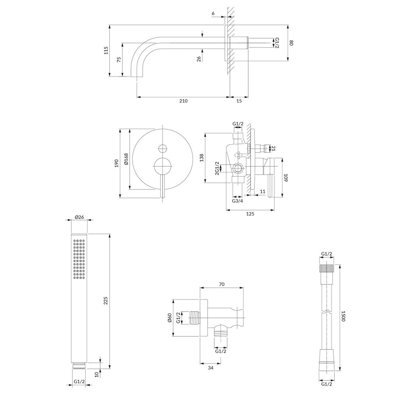 - wylewka wannowa ścienna, zasięg wylewki: 21 cm