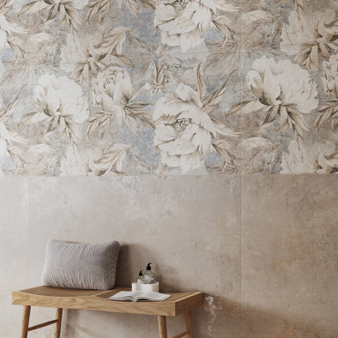 Gres szkliwiony AIORA FLOWERS DECOR beige mat 59,8x119,8. Gatunek pierwszy. Do stosowania na podłogach i ścianach, wewnątrz i na zewnątrz budynków, z wyłączeniem miejsc o bardzo dużym natężeniu ruchu.
