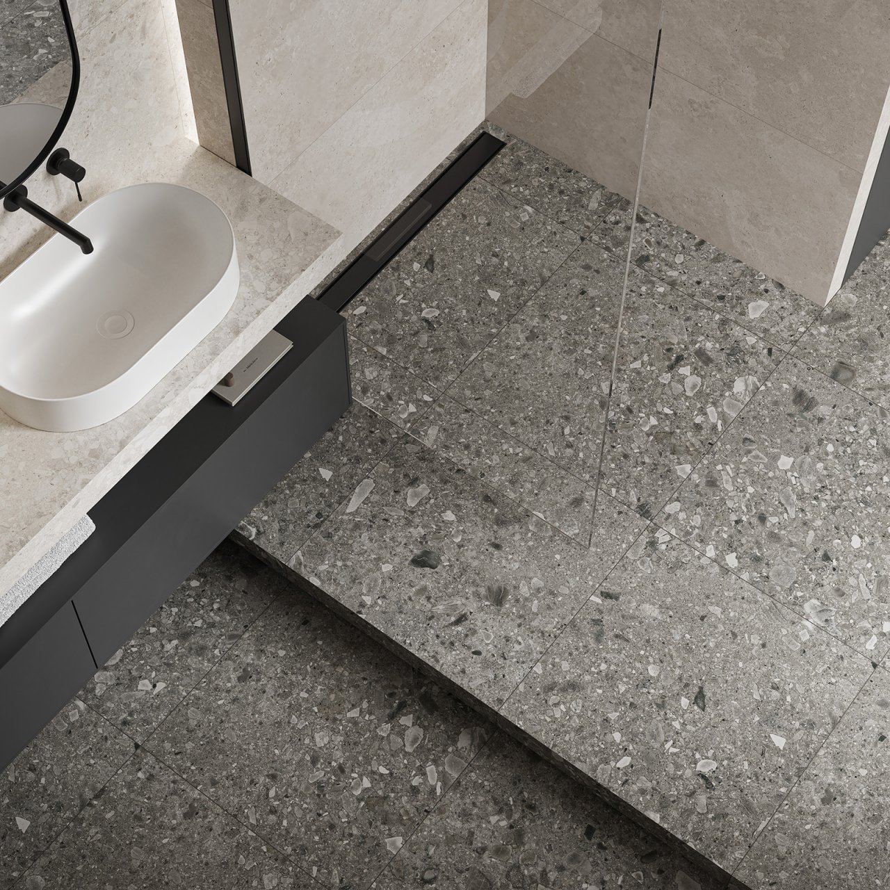 Gres szkliwiony CANDY TERRAZZO NUOVO grey mat 29,8x59,8. Gatunek drugi. Do stosowania na podłogach i ścianach, wewnątrz i na zewnątrz budynków, z wyłączeniem miejsc o bardzo dużym natężeniu ruchu.