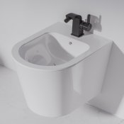 Bidet wiszący OMNIRES TAMPA wyróżnia się elegancką, nowoczesną sylwetką o smukłej, lekko zwężającej się ku dołowi formie. Bidet ma otwór na baterię bidetową oraz przelew wyposażony w ozdobną chromowaną nakładkę, którą można również wyjąć.