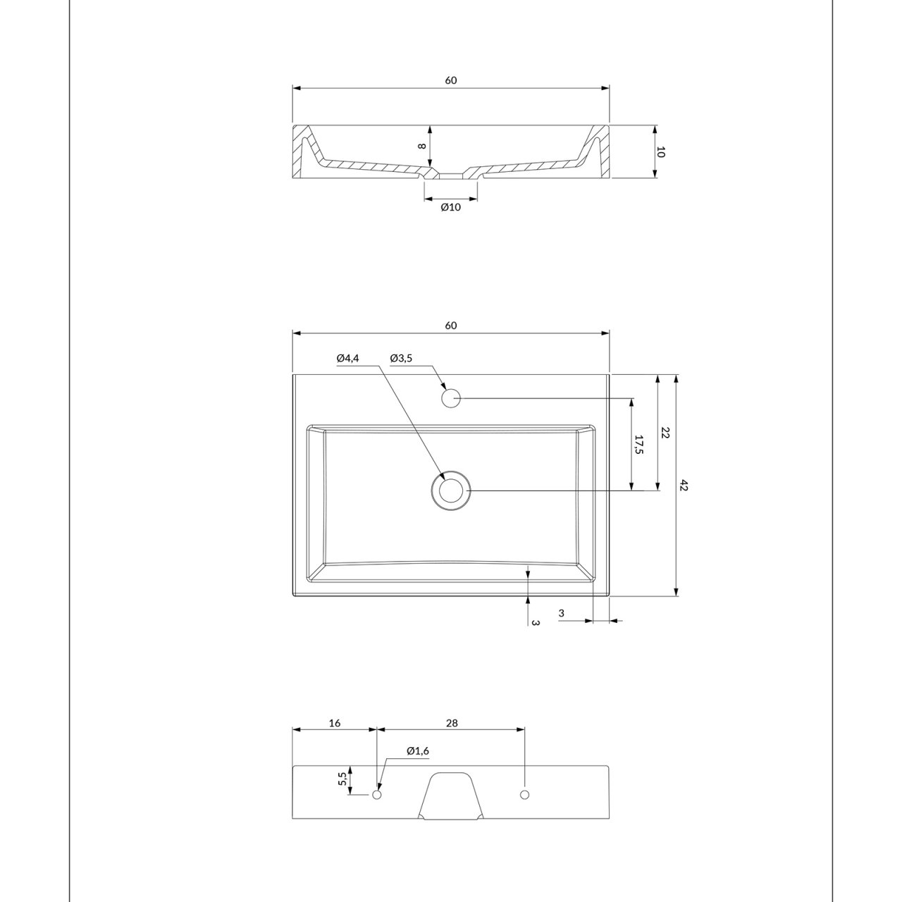 Umywalka nablatowa THASOS M+ 60 prostokątna biały połysk