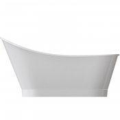 Naturalnie odbijająca światło, połyskująca powierzchnia wanny została wykończona w klasycznym kolorze bieli.