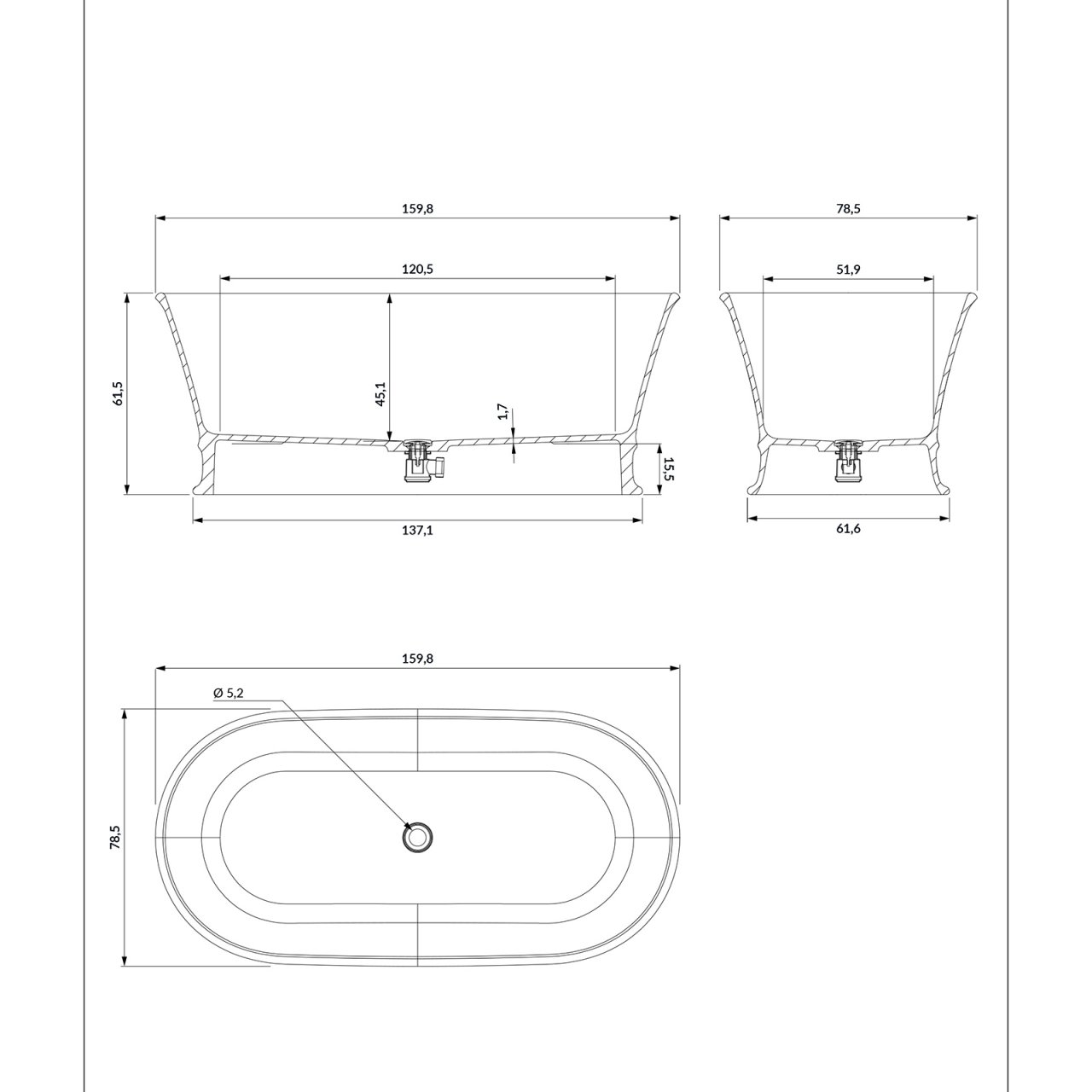 Wanna wolnostojąca CLASSICA M+ 160x79 biały mat