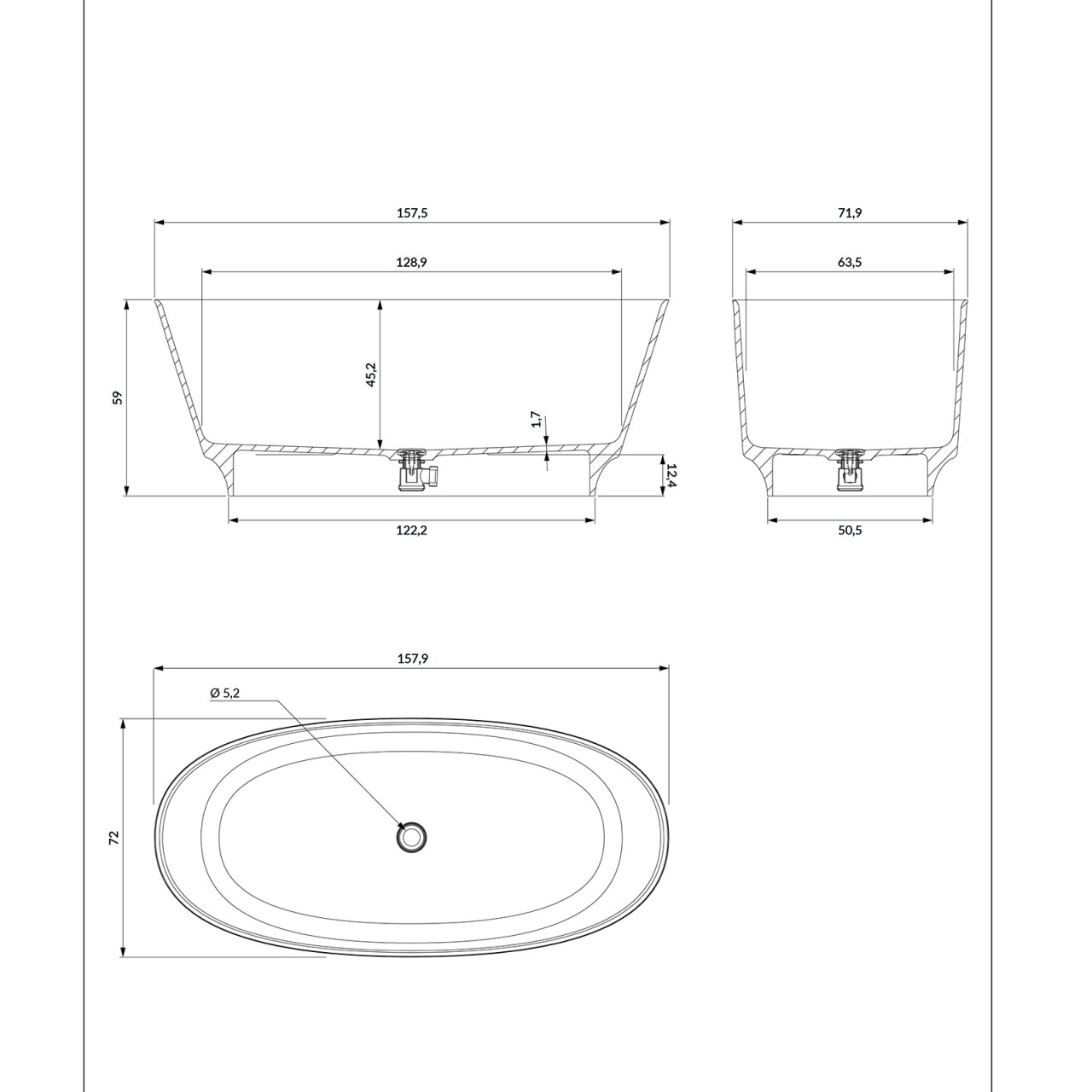 - Miejsce odpływu: Po środku