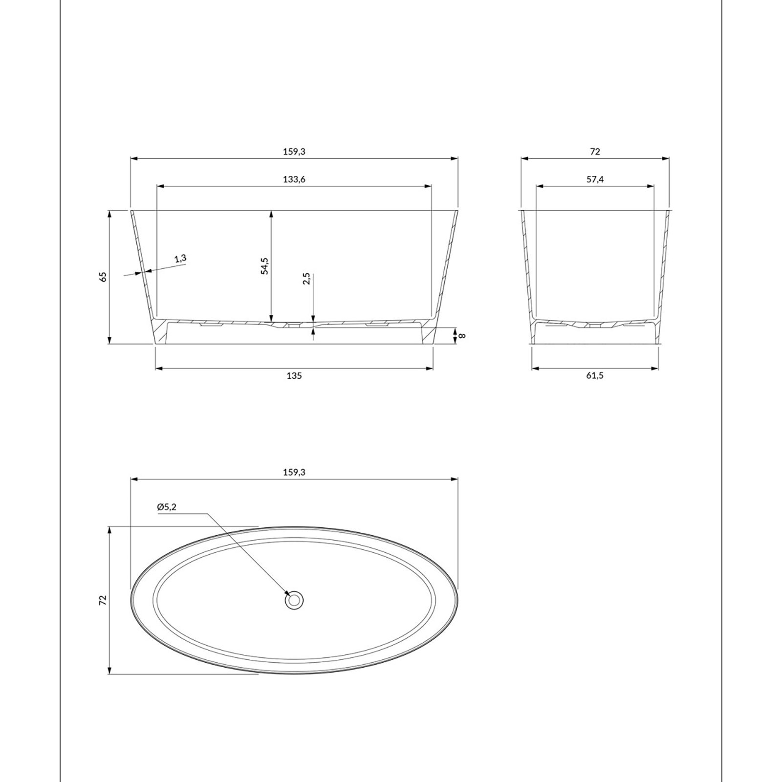 Wanna wolnostojąca ROMA M+ 159x72 owalna biały połysk