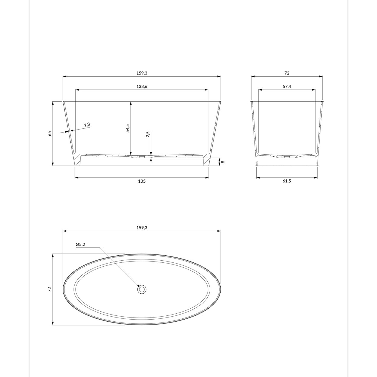 Wanna wolnostojąca ROMA M+ 159x72 owalna biały mat