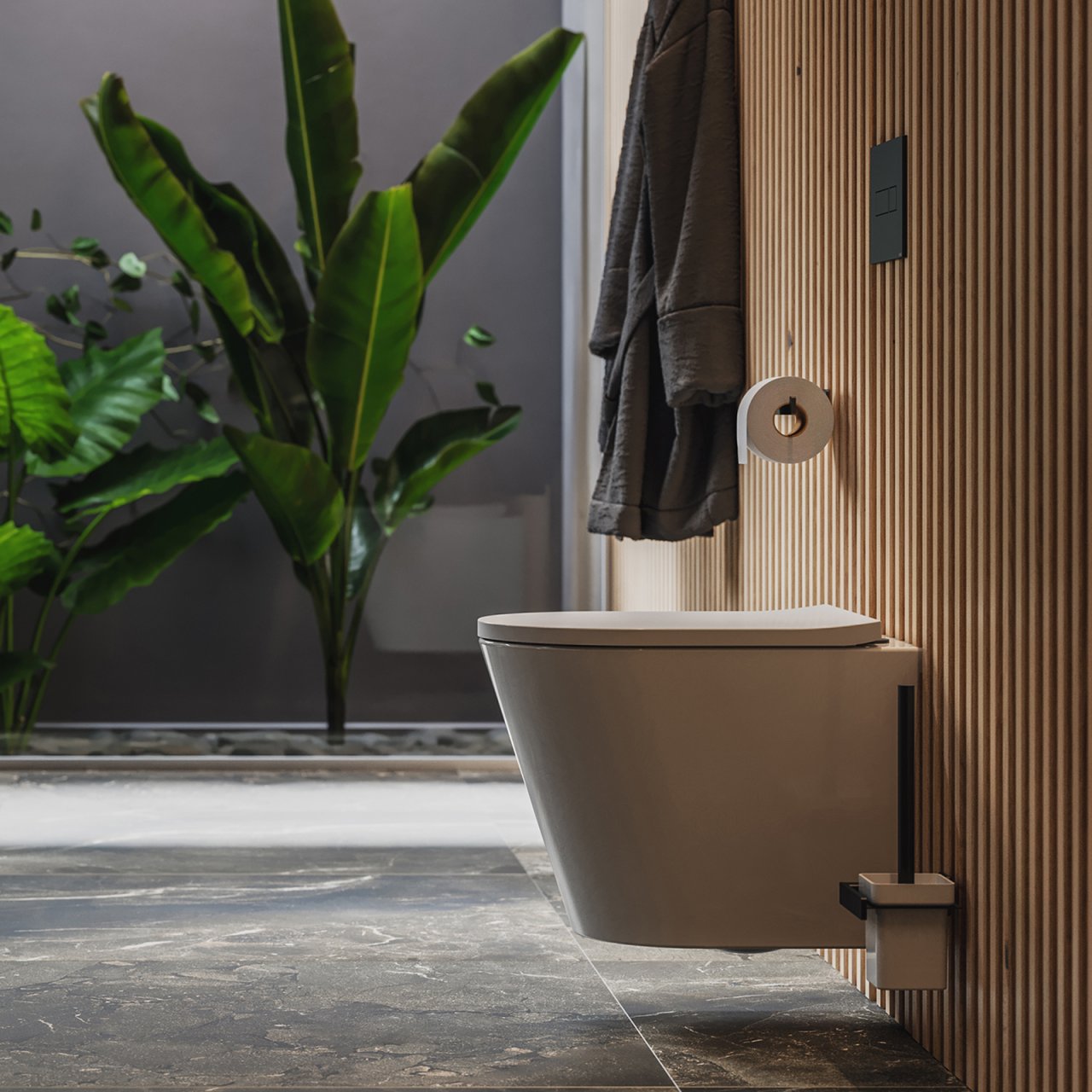 Bezkołnierzowa miska toaletowa OMNIRES TAMPA wyróżnia się elegancką, nowoczesną sylwetką. Smukła, lekko zwężająca się ku dołowi forma łączy proste linie z zaokrągleniami. Nowoczesna deska toaletowa podkreśla minimalistyczną formę miski tworząc z nią harmonijną całość.