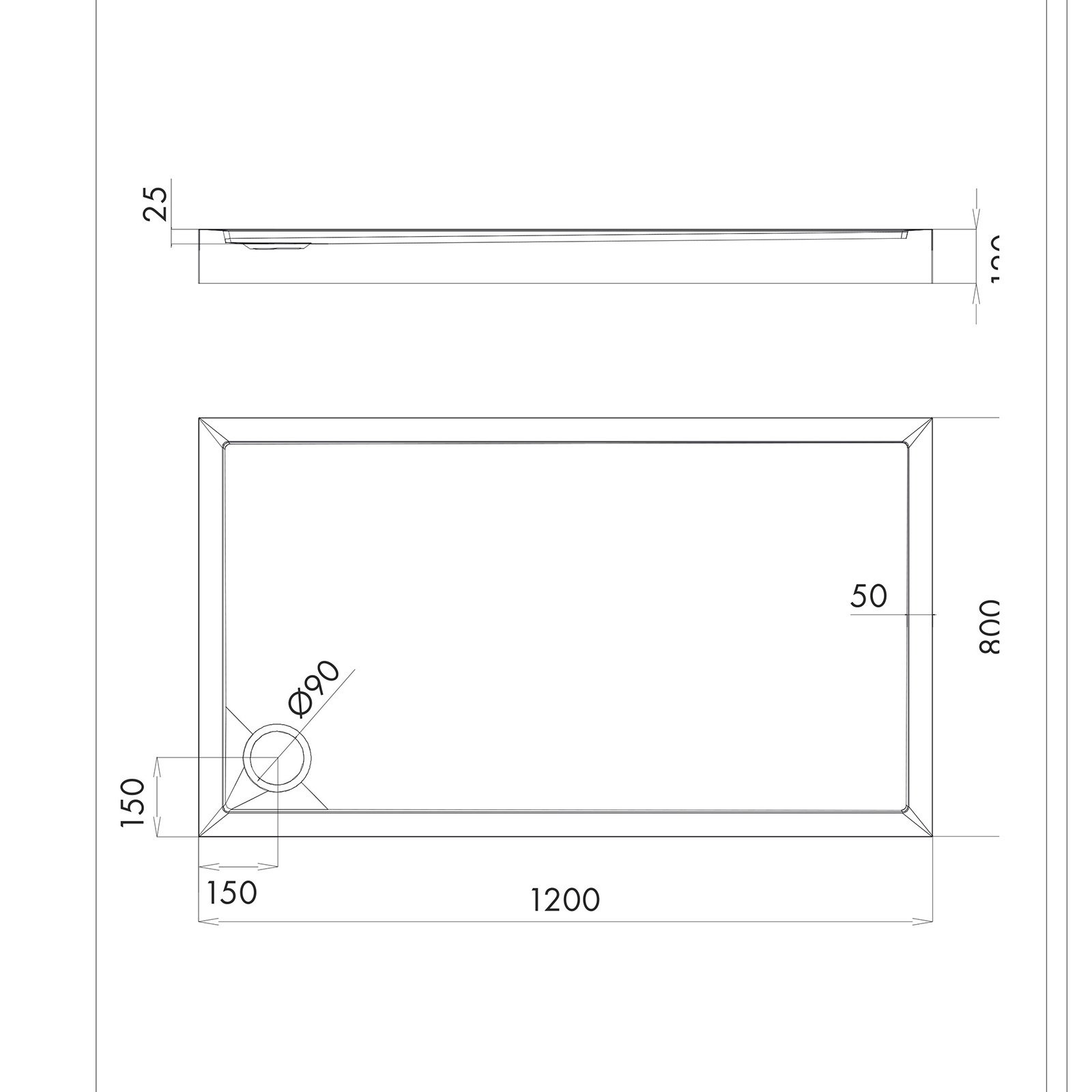 Brodzik prostokątny CAMDEN 120x80x12 biały połysk