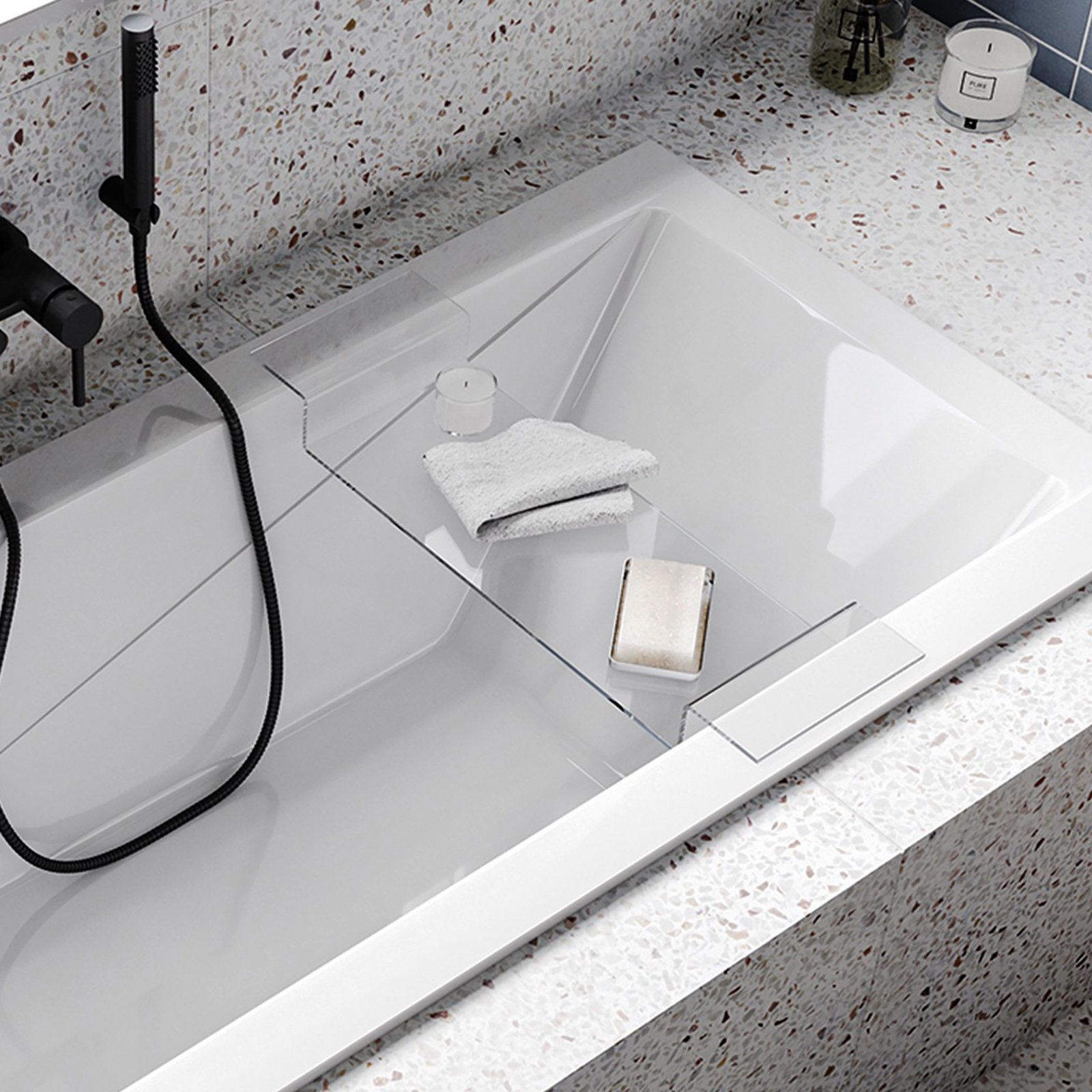 Półka na wannę akrylowa, nowoczesny design, funkcjonalna, wykonana w całości z akrylu, wodoodporna, przejrzysta.