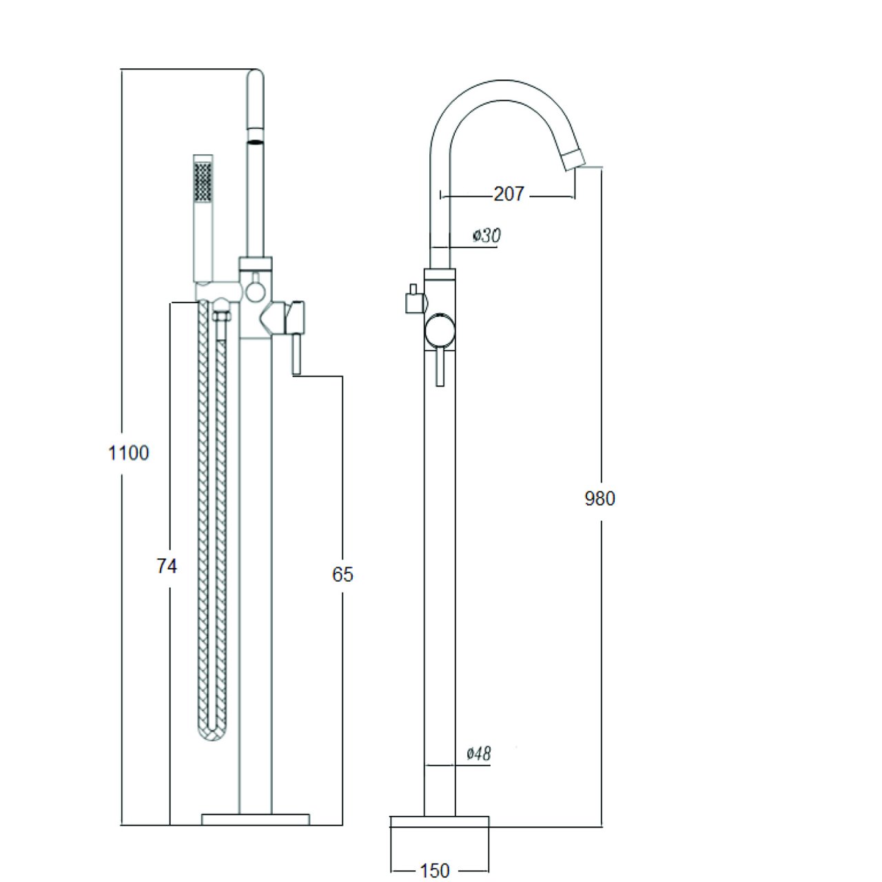 Bateria wannowa wolnostojąca VEO II z zestawem prysznicowym gun metal