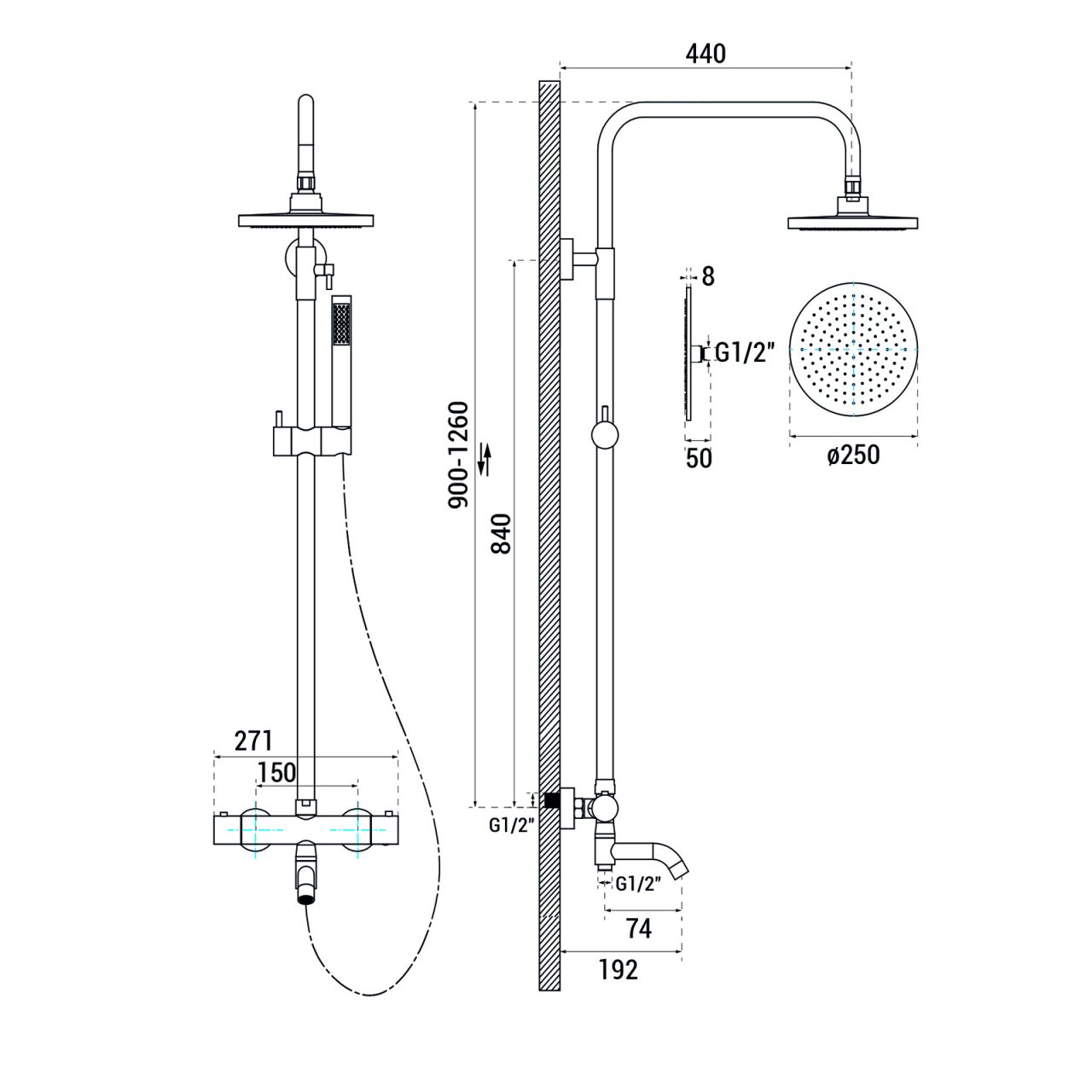 Kolumna prysznicowa VEO z baterią termostatyczną czarny mat