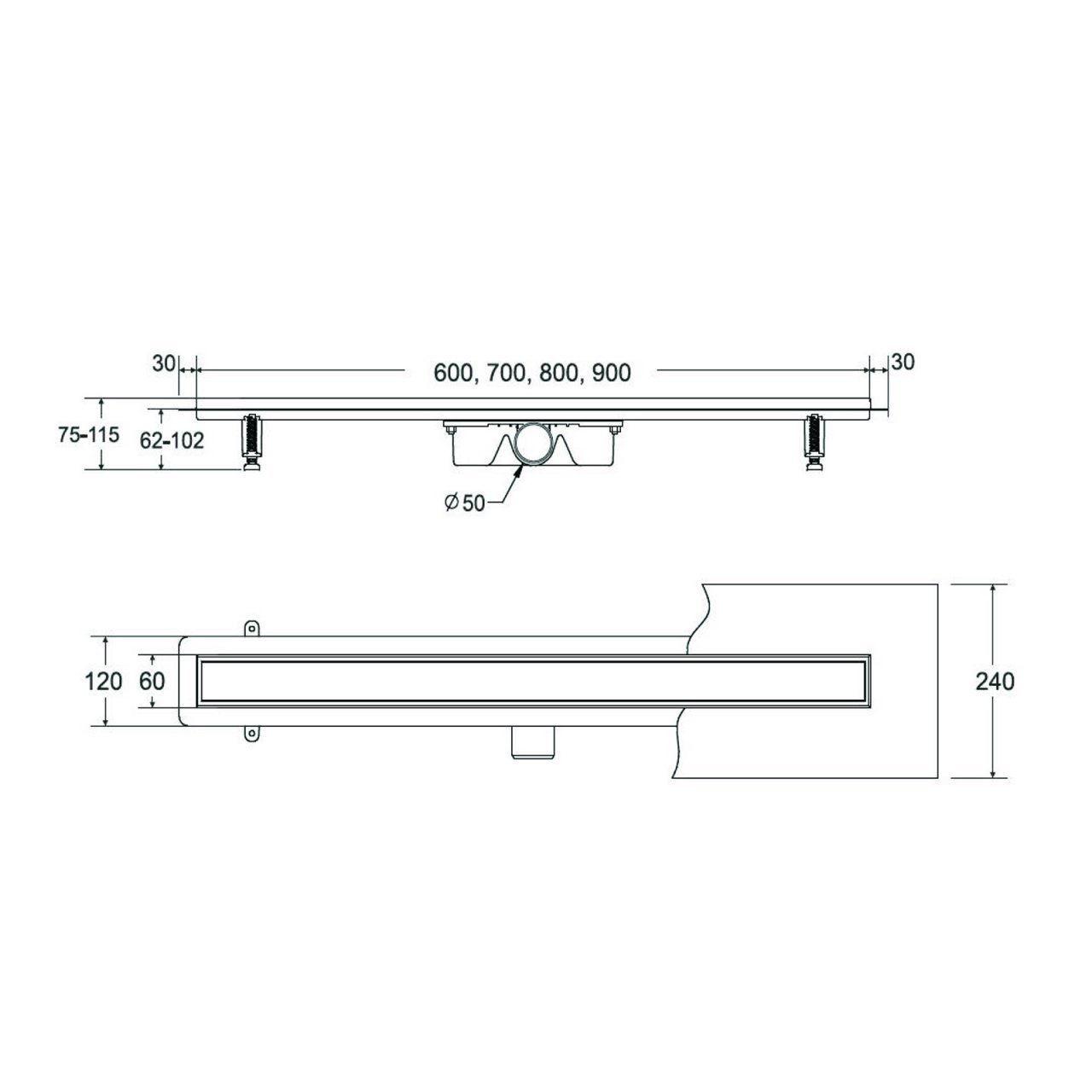- Komplet zawiera: rynienkę z syfonem i nóżkami montażowymi, ruszt oraz matę uszczelniającą.