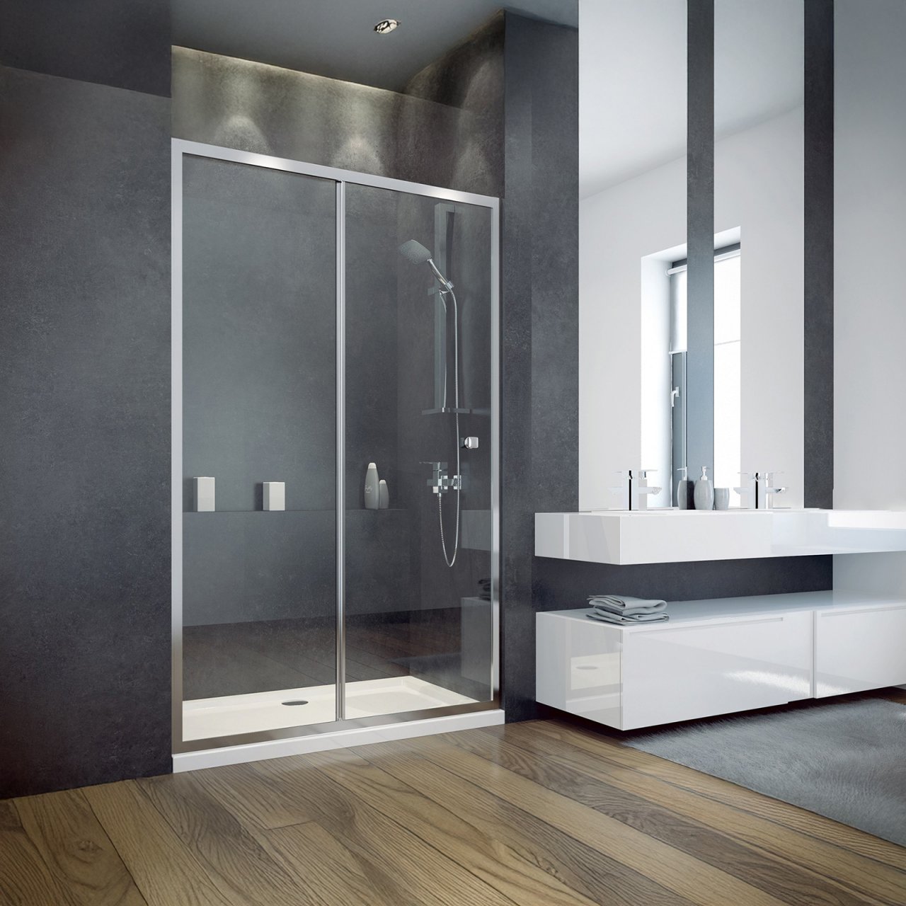 Prosty design i eleganckie chromowane detale gwarantują, że drzwi prysznicowe DUO SLIDE będą świetnie pasować do wyposażenia praktycznie każdej łazienki.