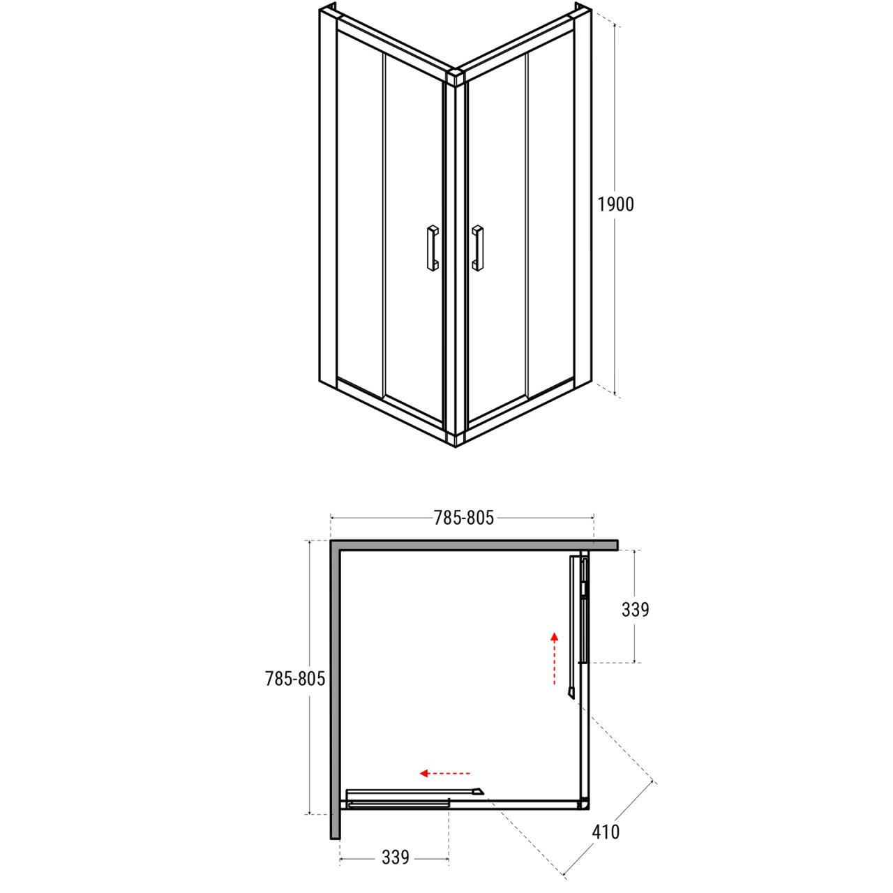Kabina prysznicowa kwadratowa MODERN BLACK 80x80 szkło transparentne