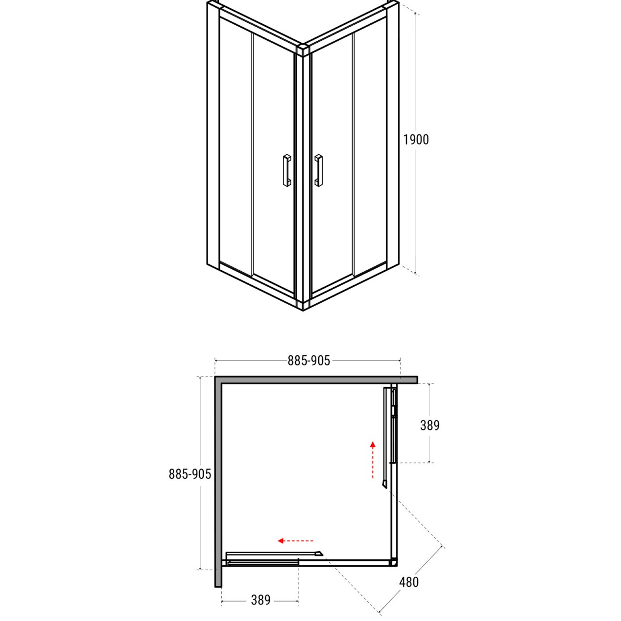 Kabina prysznicowa kwadratowa MODERN BLACK 90x90x190 szkło transparentne