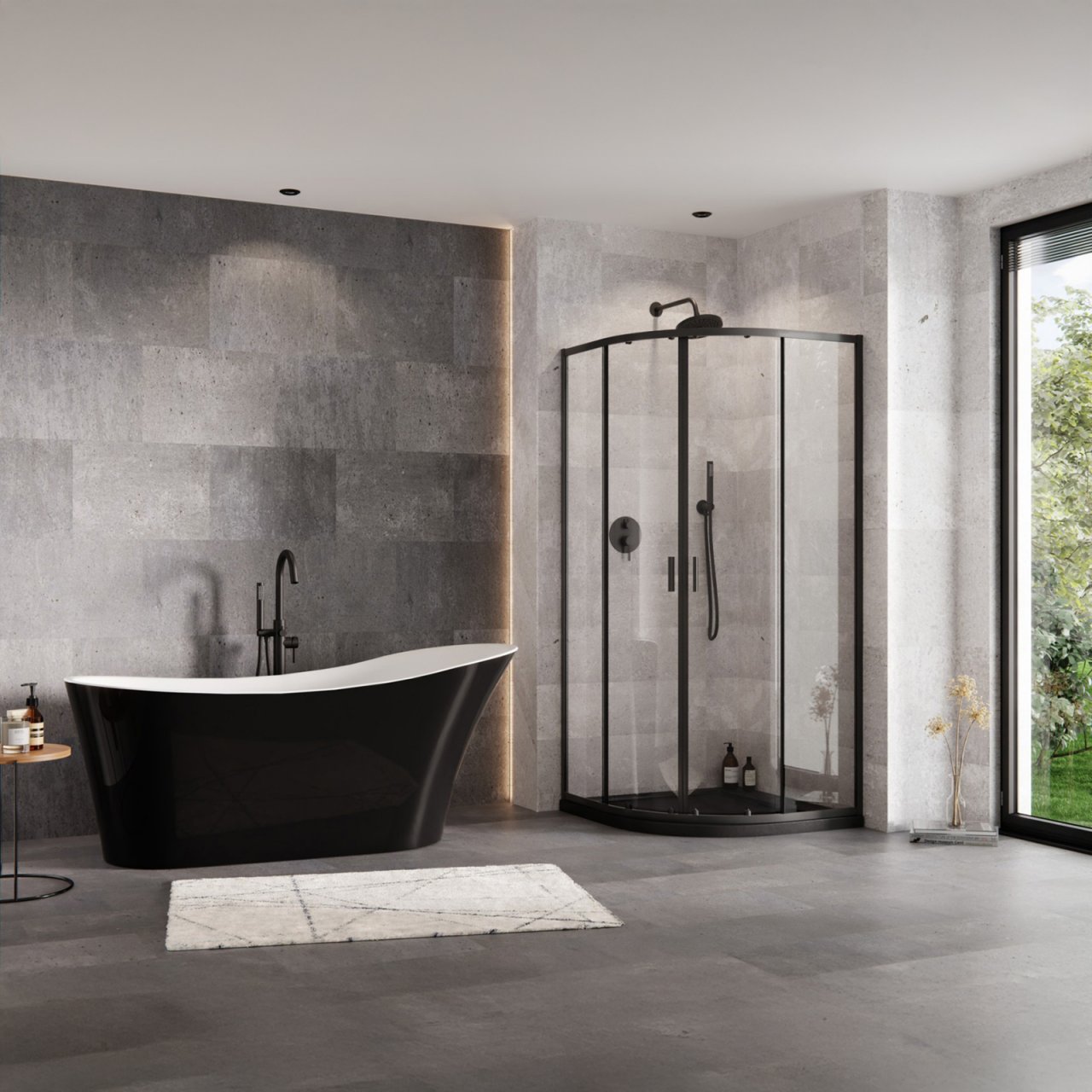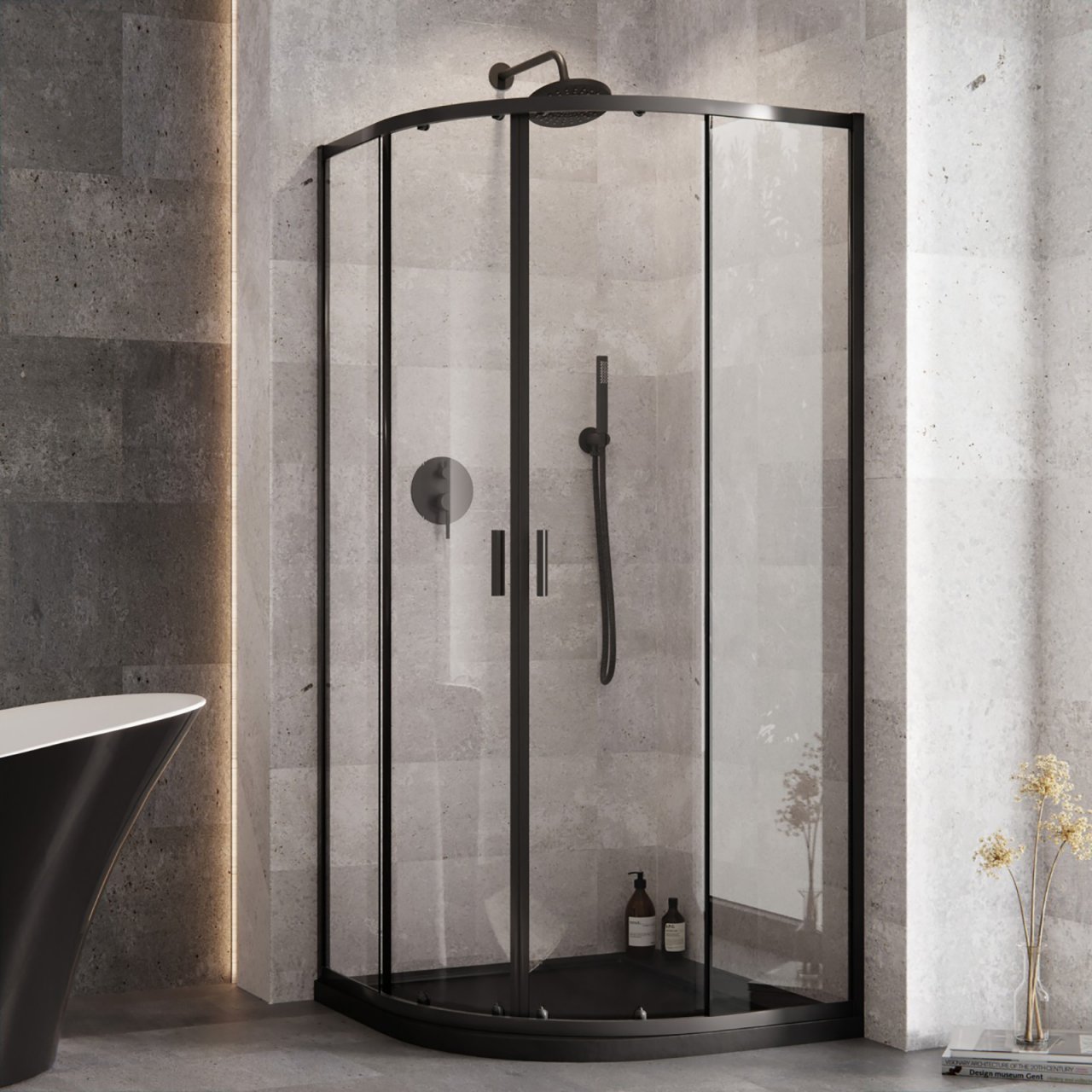 Kabina prysznicowa półokrągła ZARYA 90 z brodzikiem AXIM STONE EFFECT BLACK