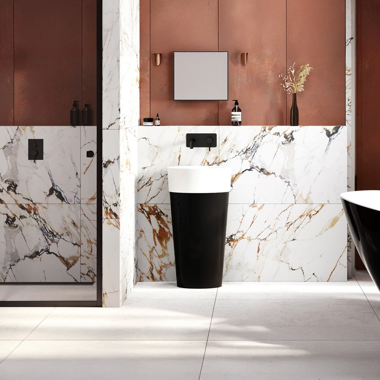 Umywalka wolnostojąca UNIQA B&W 46 z korkiem klik-klak chrom