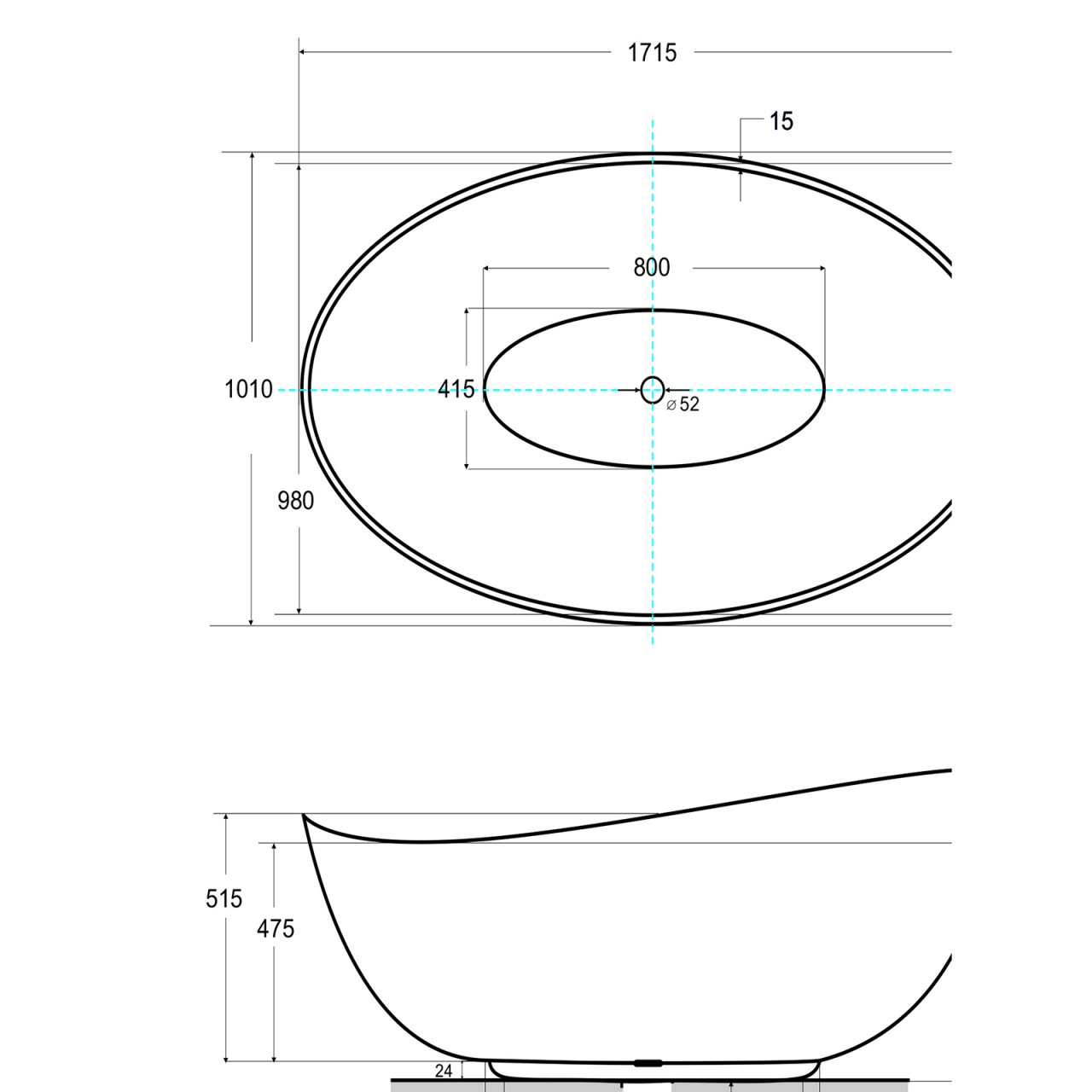 Wanna wolnostojąca SIYA 172x100 korek klik-klak biały
