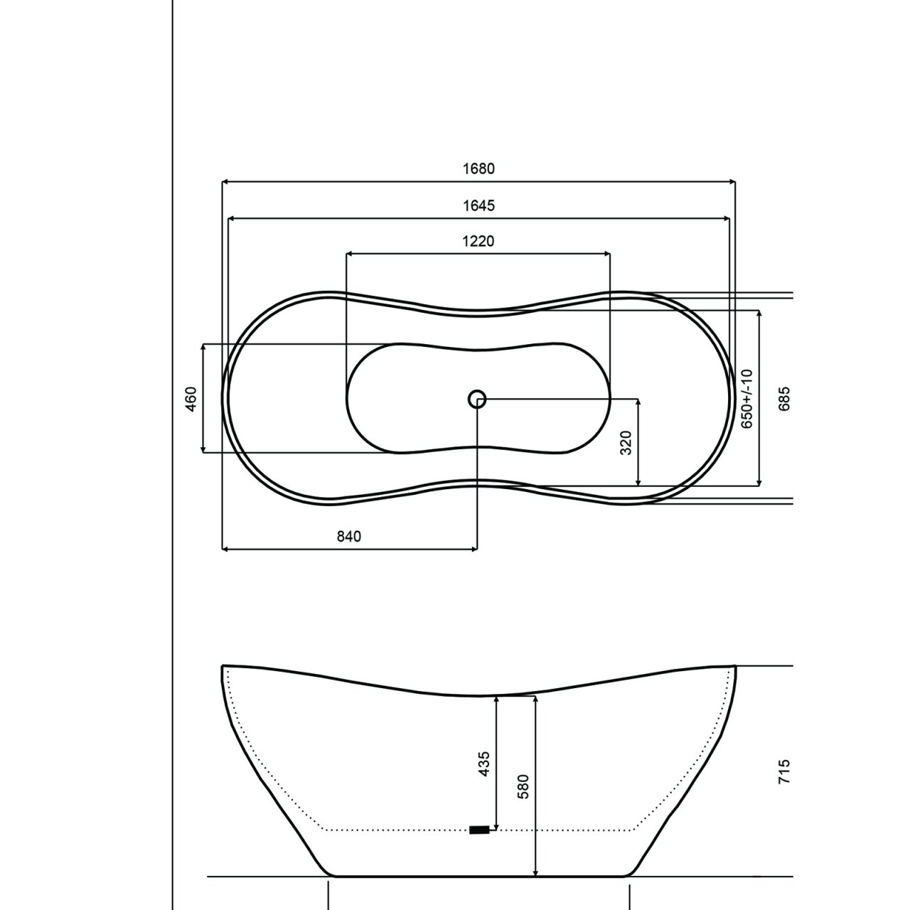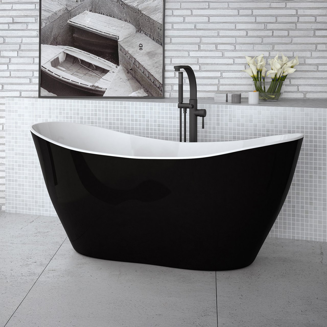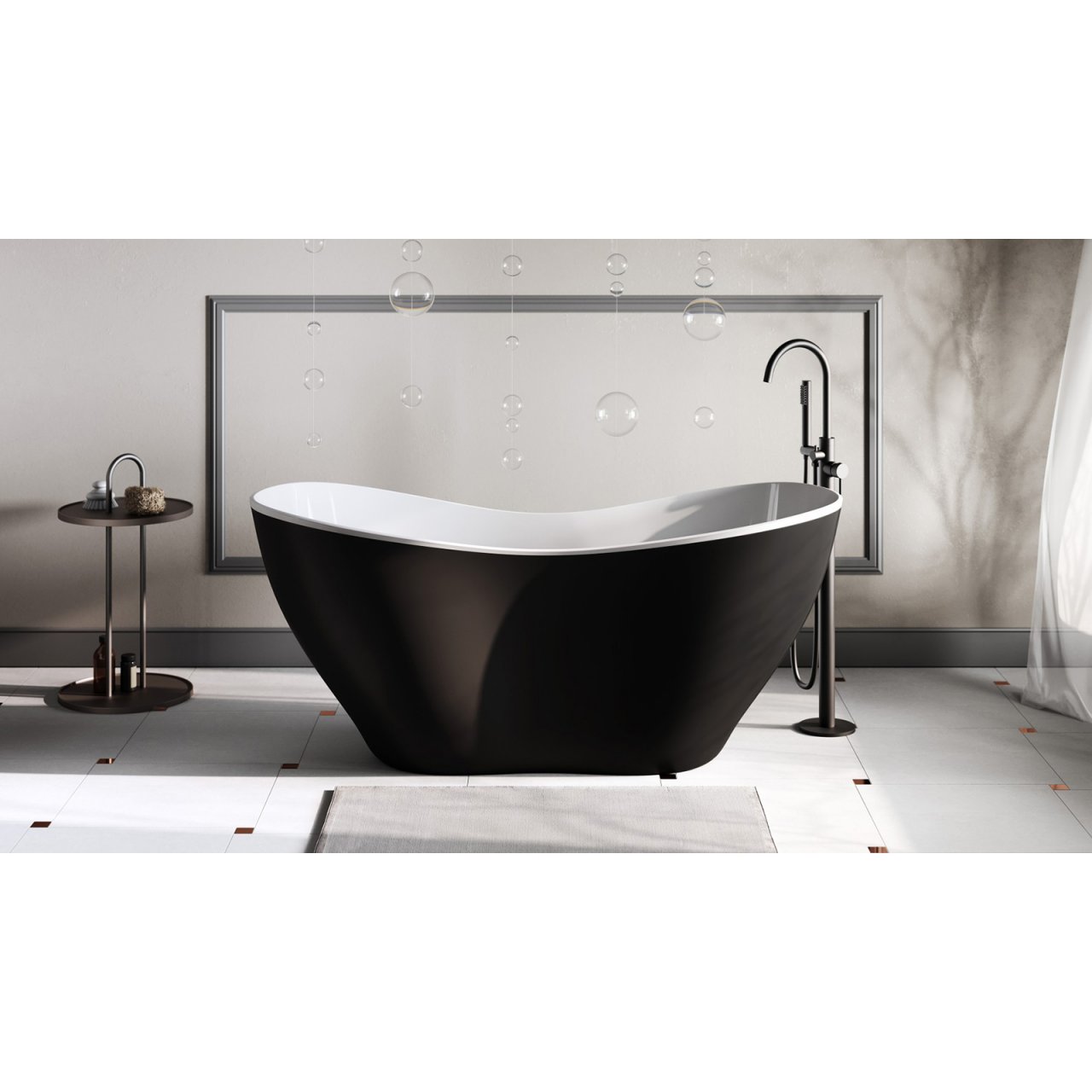 Wanna wolnostojąca VIYA B&W 170x72 korek klik-klak czarny