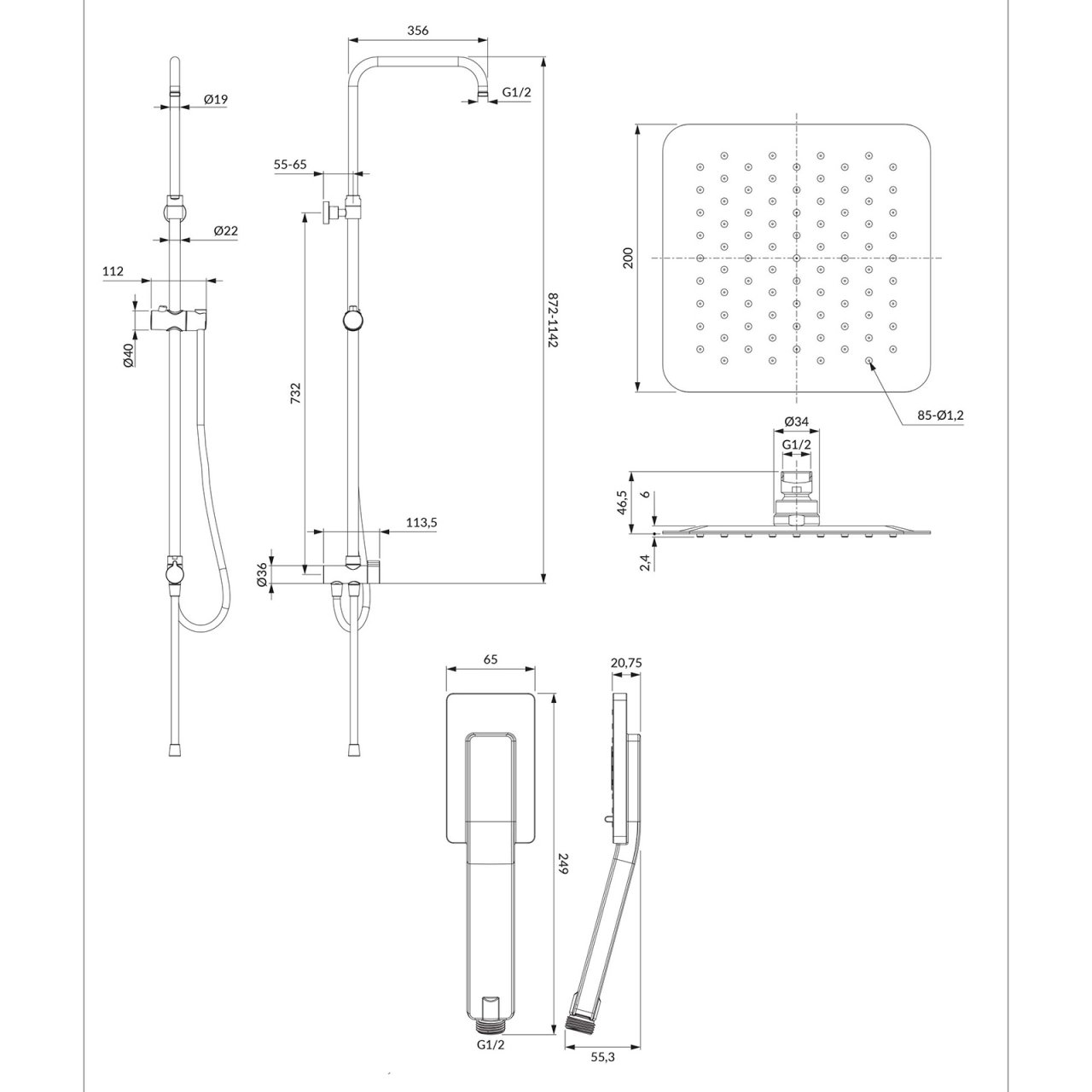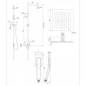 - deszczownica ze stali nierdzewnej, rozmiar: 20 x 20 cm, zasięg ramienia od ściany: ~41 cm;