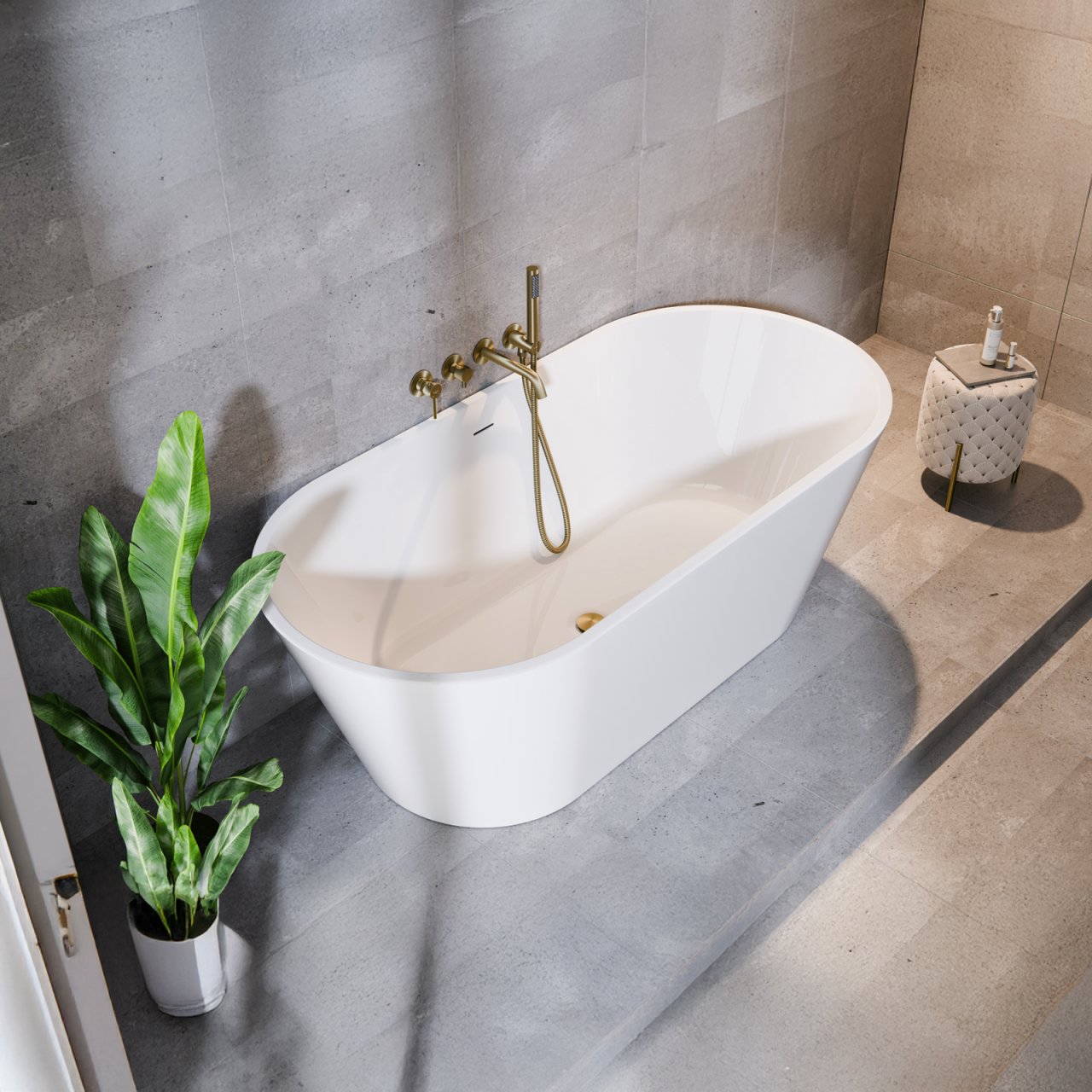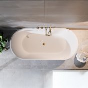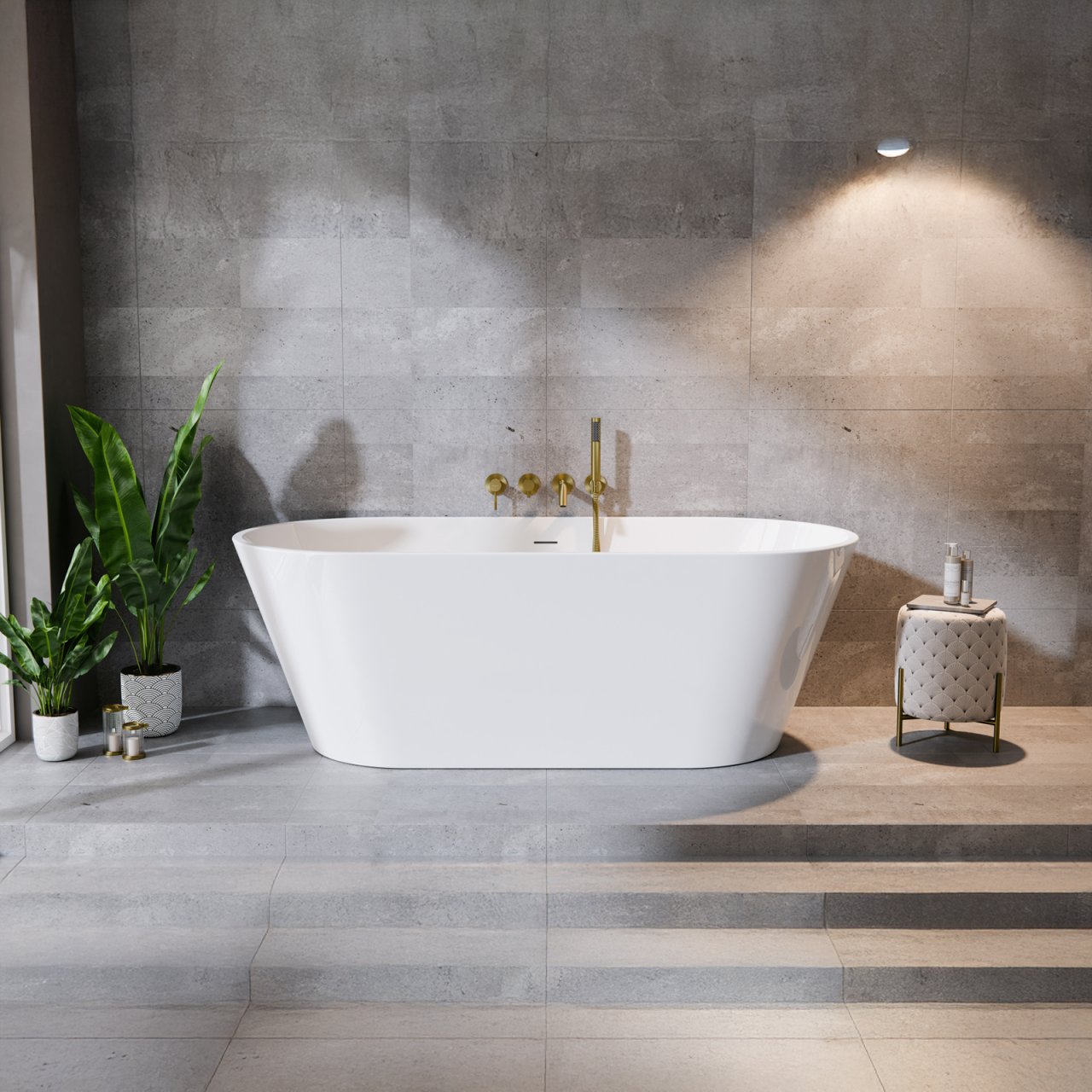 Wanna wolnostojąca DEEVA biała 150x75 maskownica syfonu złota