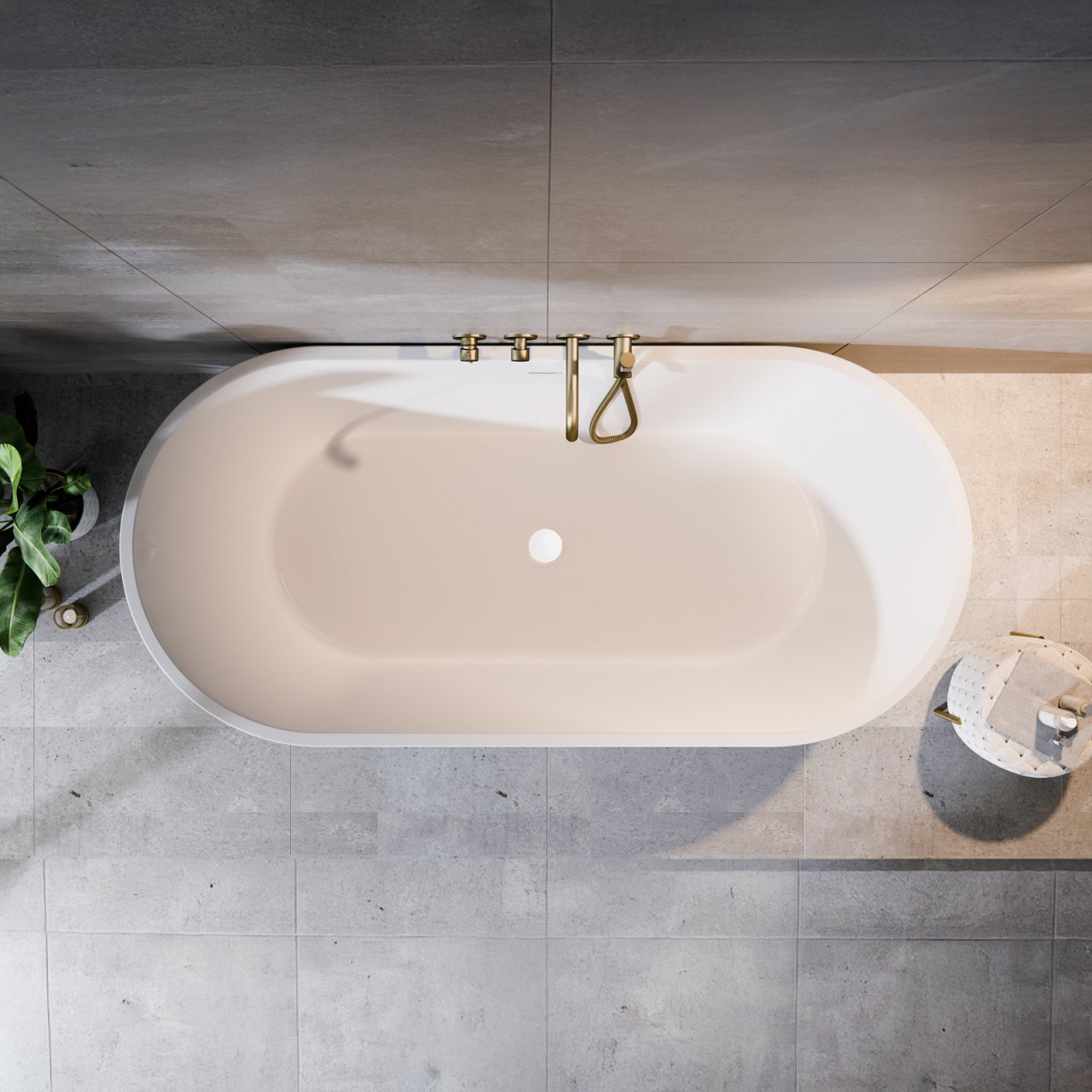 Wanna wolnostojąca DEEVA GLAM złota 150x75 maskownica syfonu biała