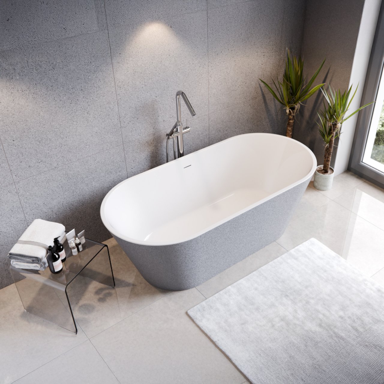 Wanna wolnostojąca DEEVA GLAM srebrna 150x75 maskownica syfonu gun metal