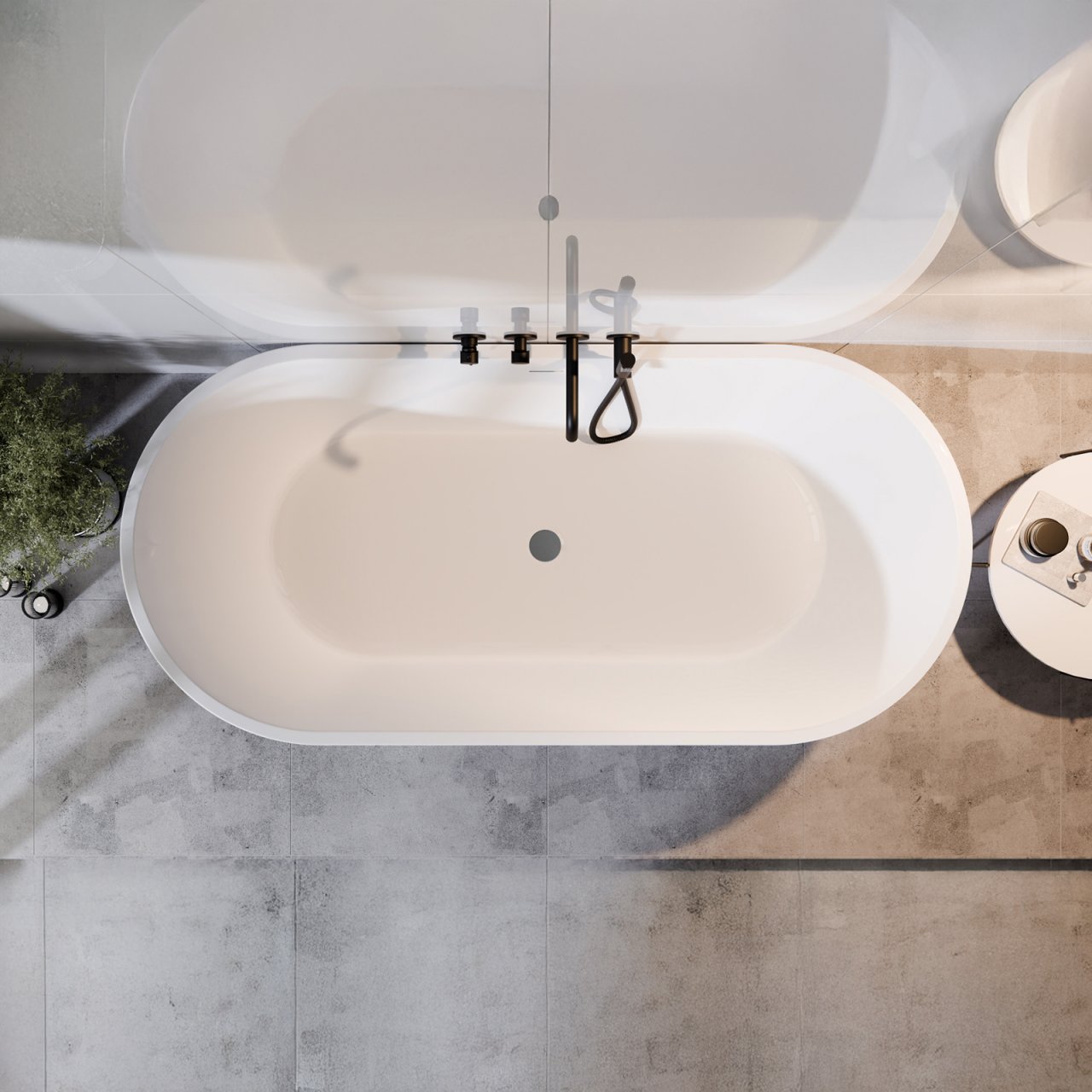 Wanna wolnostojąca DEEVA GLAM grafitowa 170x80 maskownica syfonu gun metal