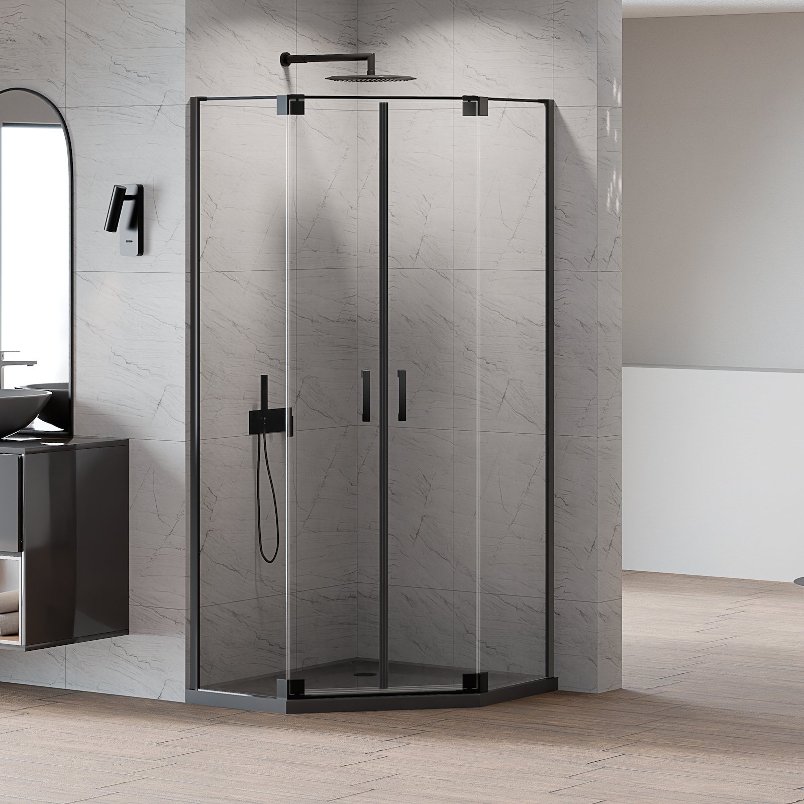 Kabina prysznicowa pięciokątna ALLURIA 2D BLACK MATT 90x90x200