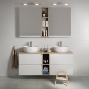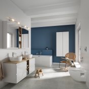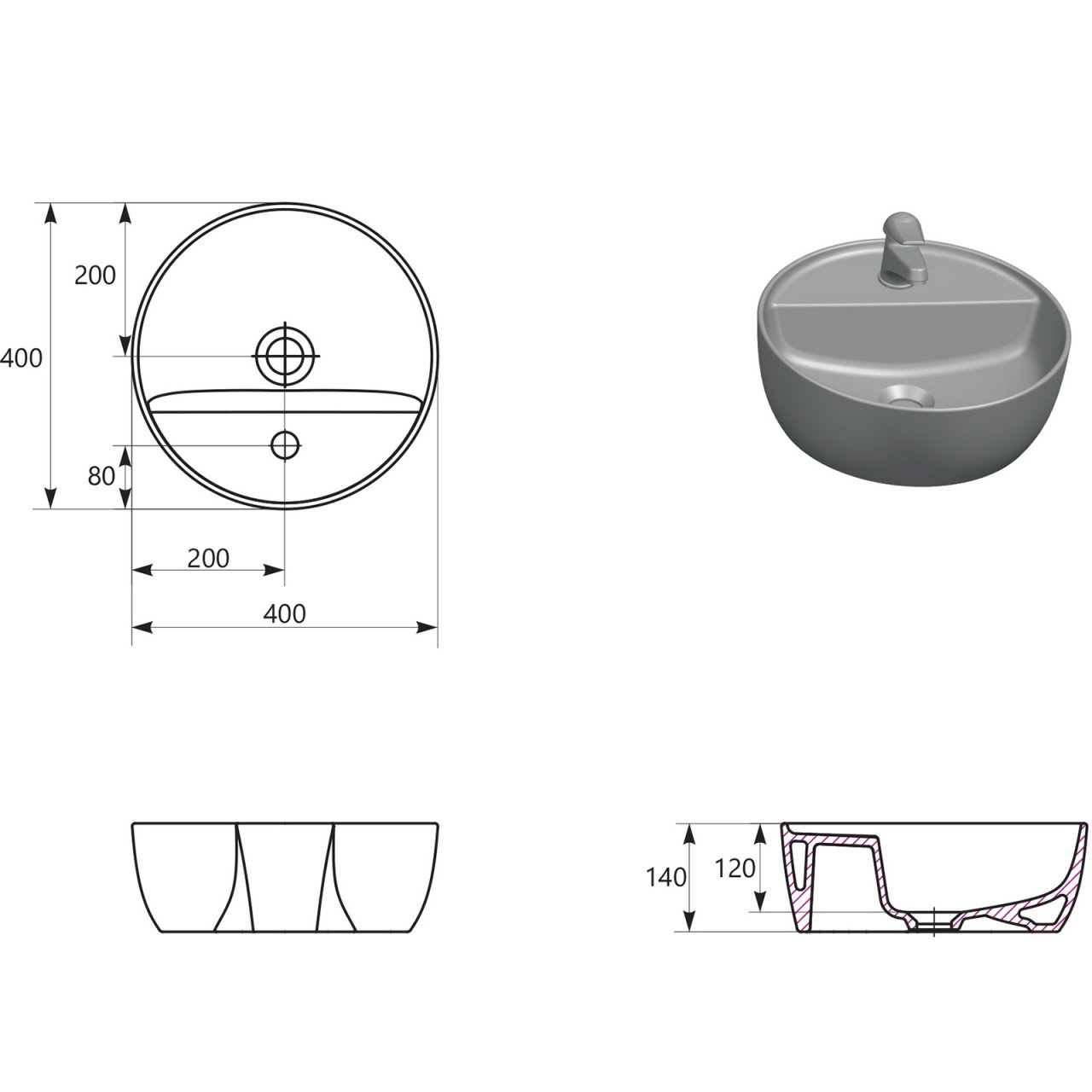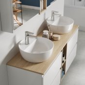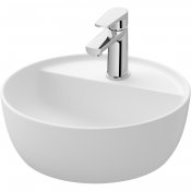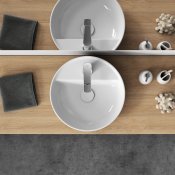 Umywalka nablatowa MODUO 40 (okrągła) o cienkich, 8 milimetrowych ściankach została wykonana z ceramiki szamotowej. Funkcjonalny i estetyczny design sprawia, że świetnie pasuje do nowoczesnych i tradycyjnych łazienek i bardzo dobrze komponuje się z drewnianymi lub kamiennymi blatami. Uniwersalny, centralny otwór na baterię pozwoli dopasować do tego modelu umywalki dowolną armaturę marki Cersanit. Umywalka może zostać zamontowana z szafkami z blatem CREA, LARGA by Cersanit, MODUO, VIRGO.