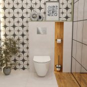 Łatwy dostęp Konstrukcja stelaża umożliwia łatwy dostęp do wnętrza zbiornika nawet podczas użytkowania zestawu w pełnej zabudowie. Okienko rewizyjne, które umożliwia konserwację lub regulację produktu, znajduje się za przyciskiem spłukującym, który można łatwo, bezinwazyjnie zdjąć na każdym etapie życia stelaża, bez potrzeby ingerencji w zabudowę wokół produktu.