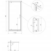 Drzwi pivot ARTECO kabiny prysznicowej 80x190 czarne, szkło transparentne.
