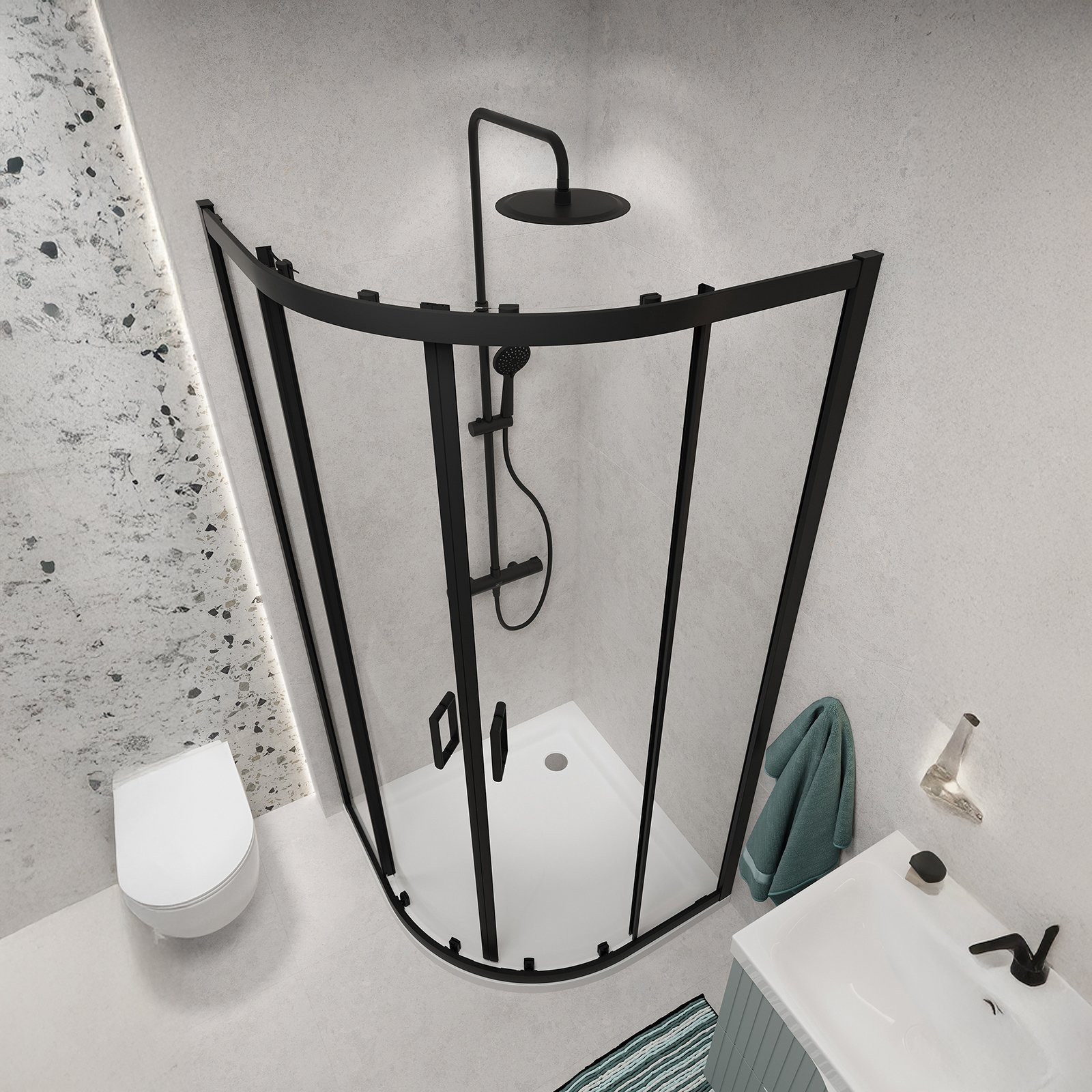 Kabina prysznicowa ARTECO półokrągła 80x190 czarna, szkło transparentne.